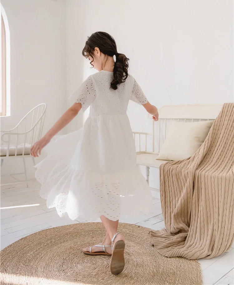 Летние белые кружевные платья из 100% хлопка для девочек 10, 12, 14 лет, корейские свободные платья принцессы, одежда для девочек-подростков