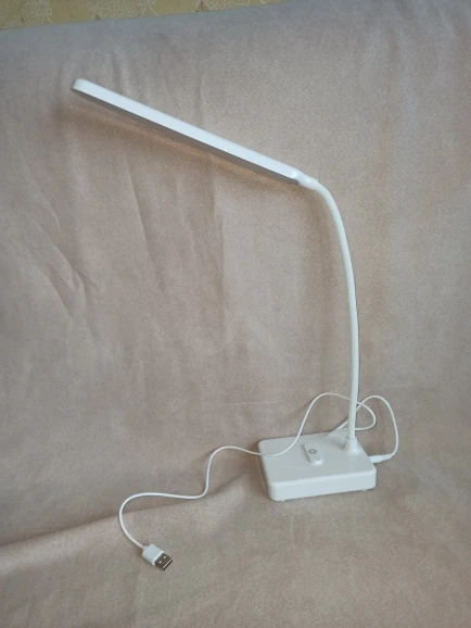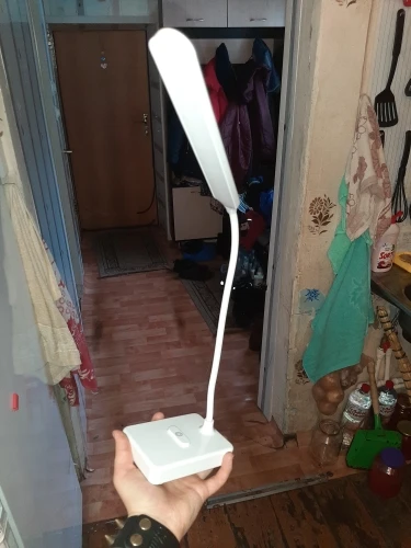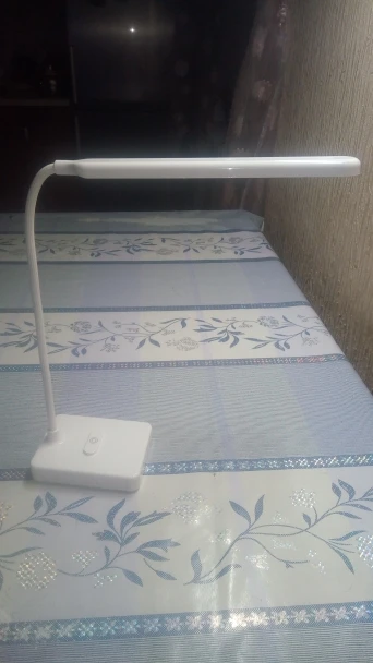 Долго выбирал лампу, для пожилого человека для решения кроссвордов и чтение газет/книг (как дополнительный источник света, легкий для рук) и для работы (домашней!!!) за ПК, между множеством отзывов и вопросов-ответов. Доставка 3 недели, трекалось. упаковка мановакууметровая (надежная))) ). На фото: в кромешной темноте, и с каждом из трех режимов. Для всех моих хотелок самое ТО! Для учебы детям нет (тогда минимум две брать). Акк (без какой либо маркировки) в режиме тестирования на умной зарядке Лиитокала показал 1295 разряд и 1286 мАч заряд. Родным шнурком после подключил для проверки - все равно горел краный светодиод (говорят, когда зарядится, то должен загореться зеленый). Соотношение цена/дизайн/легкость/хз что еще - отлично. Высота прямой стойки 30 см, сам плафон если от прямой стойки нагнуть на 45 градусов - будет от основания на чем стоит от крайней верхней точки около 50 см. Предпологали что будет коротковата - но оказалось самое ТО по высоте. Рекомендую (с акком).