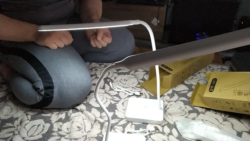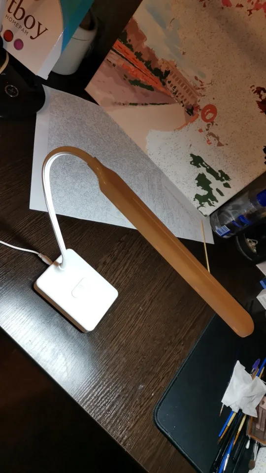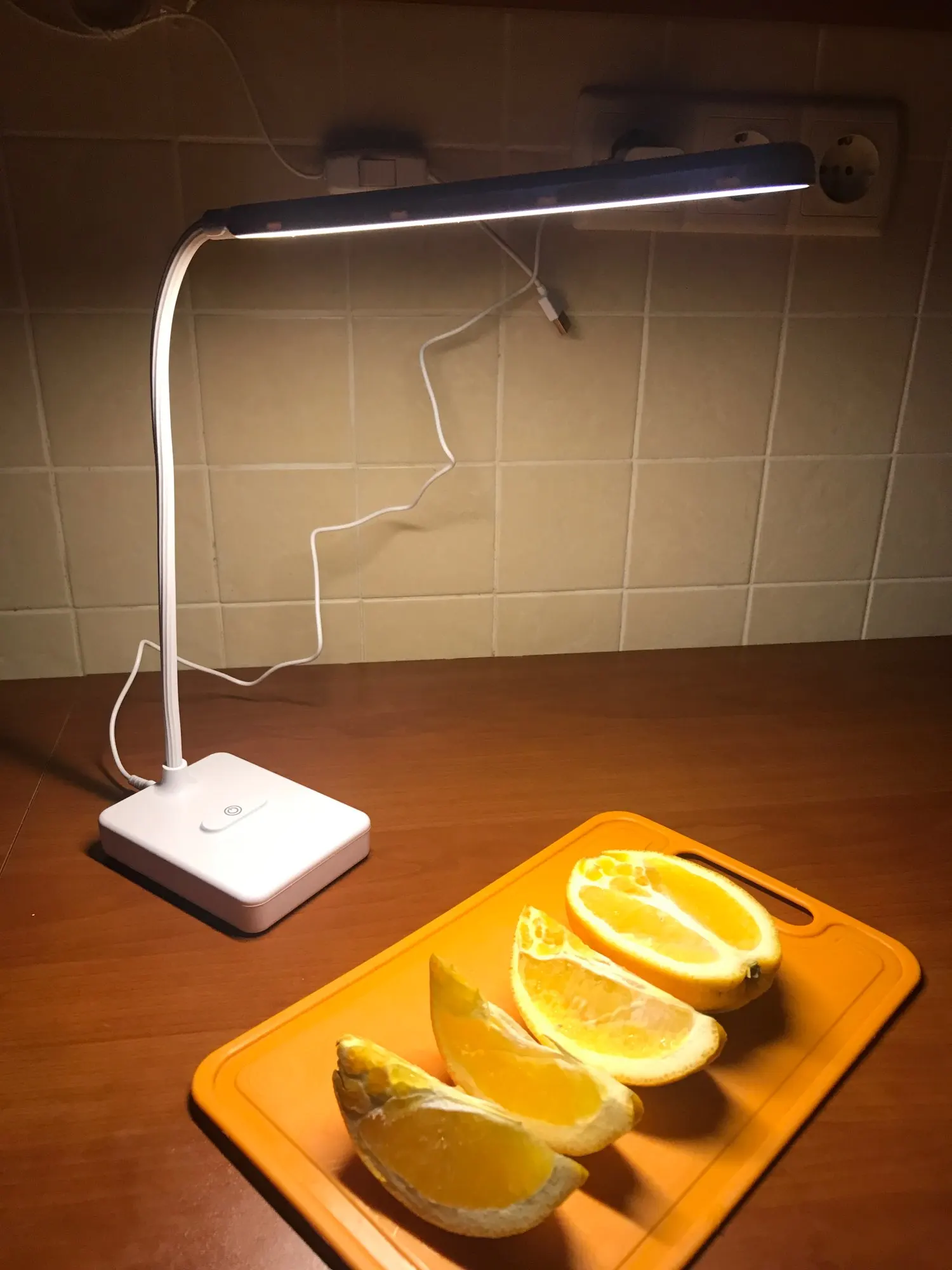 До України дійшло майже за місяць. Запаковано дуже добре. Лампа забезпечує світлом поверхню на столі досить гарно. Має три режими: холодне світло, тепле світло та посилене холодне світло.