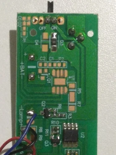 очень долгая доставка 2месяца, лампа пришла хорошо упакована , работает отлично, есть три режима и димер на всех. единственное всем минус заказал без батарейки думал вставлю сам , но не тут то было нет ни крепления контактной группы ни розпайки на плате . ели кто может сфоткайте плату с элементами. спасибо. продавца рекомендую