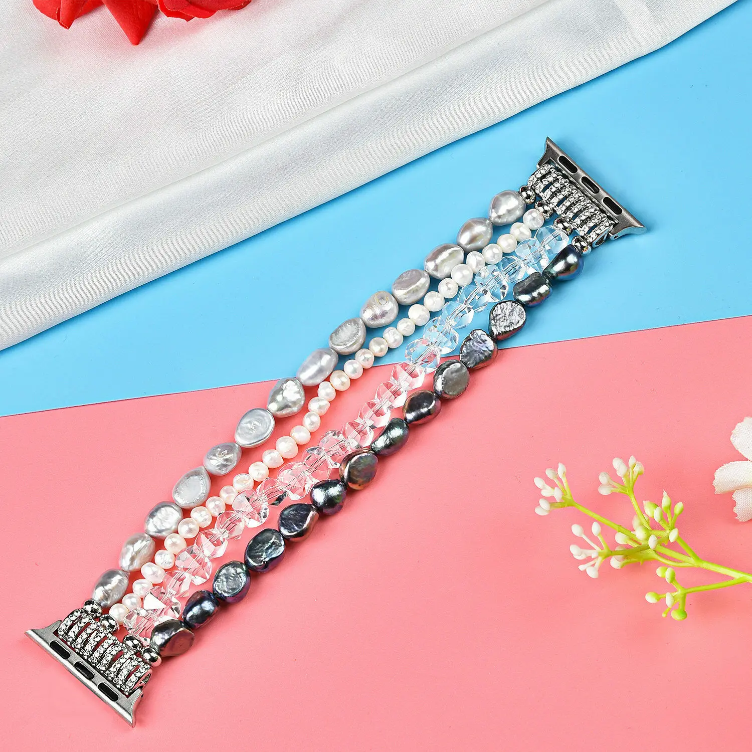 Эластичный браслет с жемчугом и кристаллами для Apple Watch Series 5 4 40 мм 44 мм Женский Блестящий ремешок для iWatch 1 2 3 38 мм 42 мм