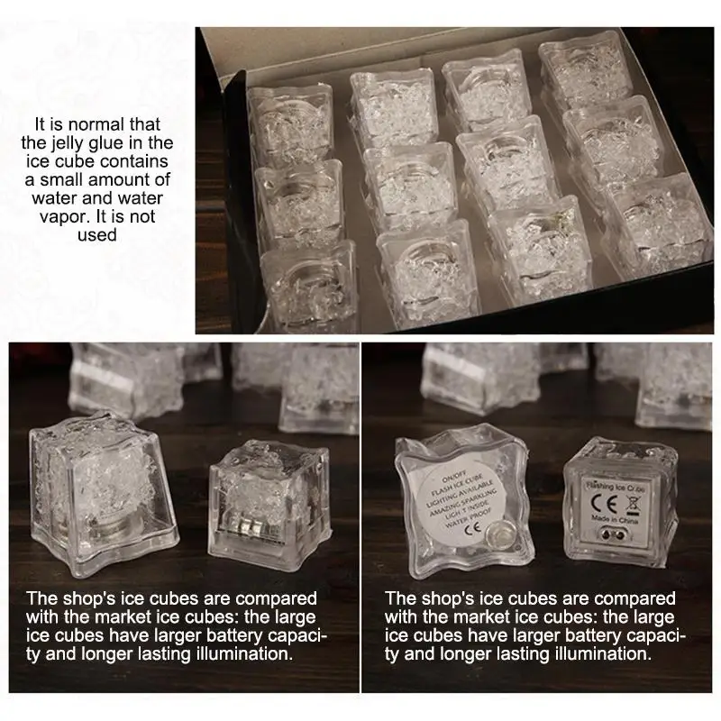24 шт.2 шт. в наборе, светодиодный кубики льда светящиеся вечерние шар флэш светильник светящиеся неоновые, свадьбы, праздника, для винного бара безвкусный Стекло украшения п