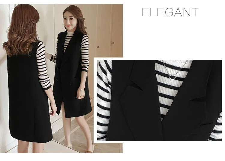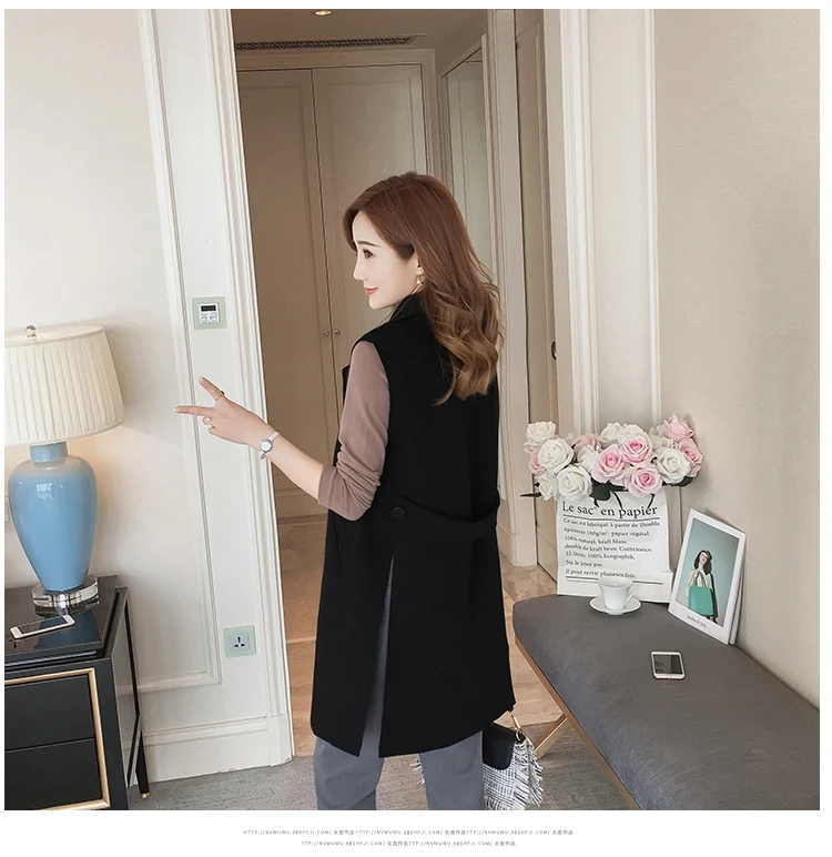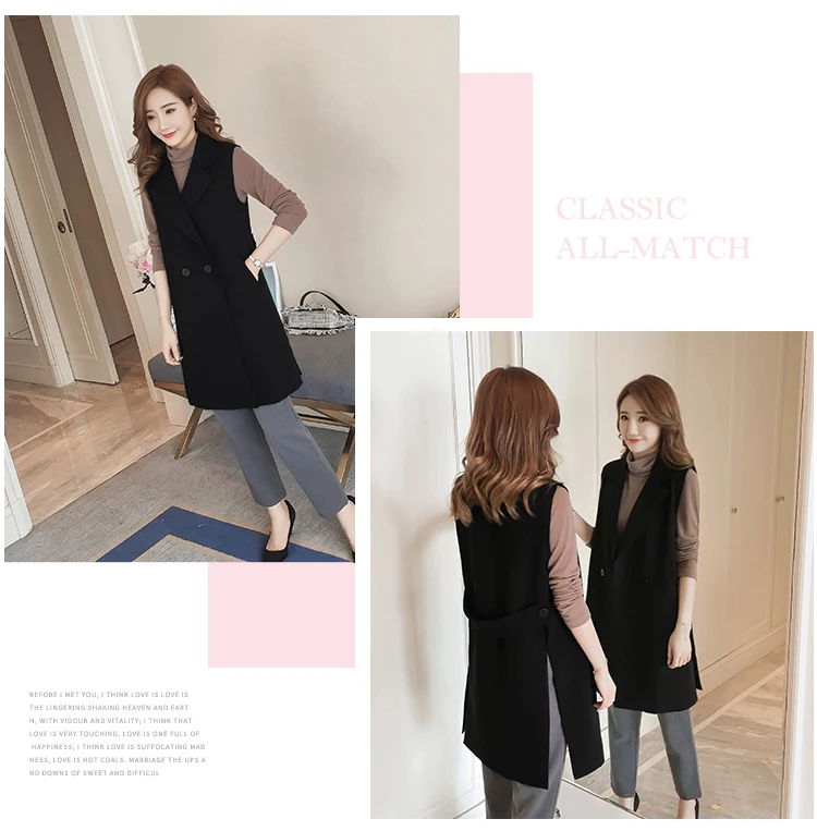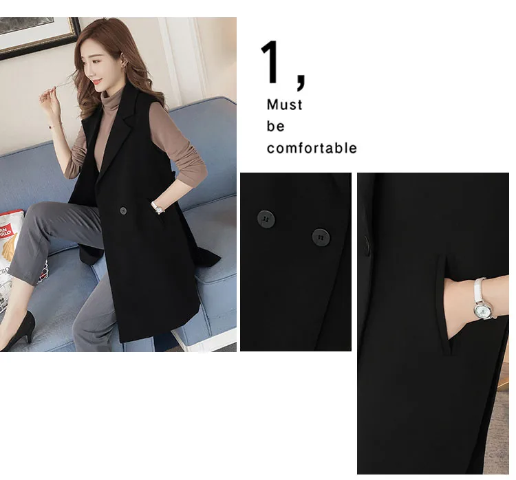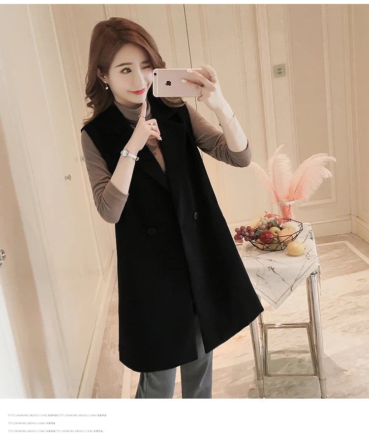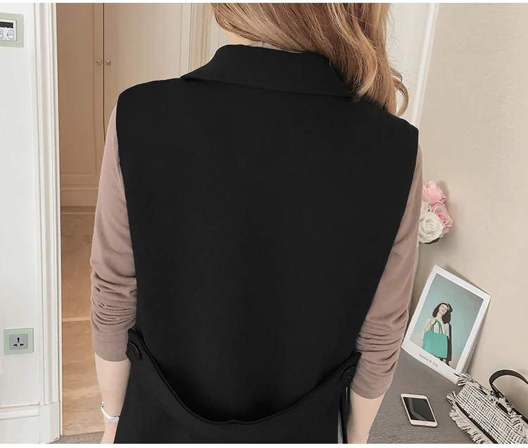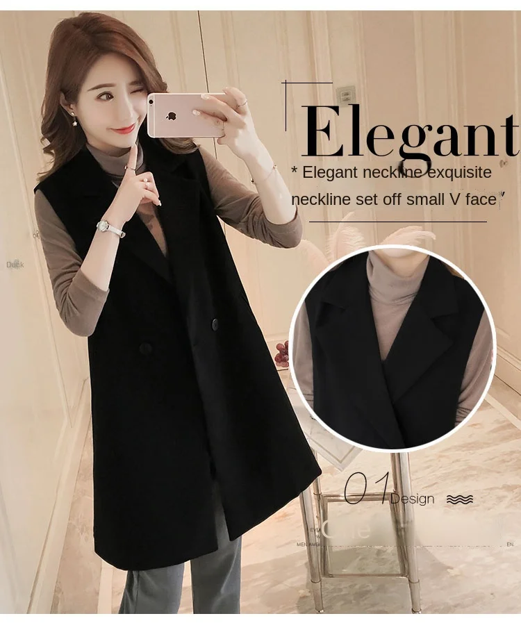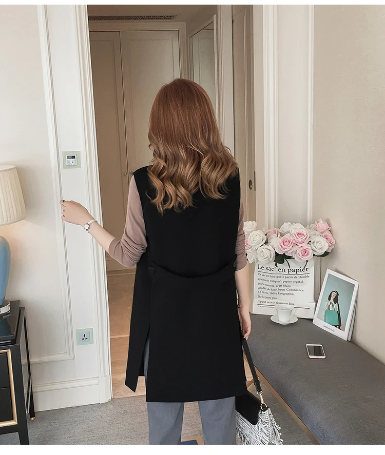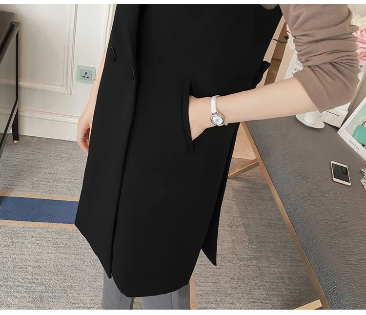 Женский жилет без рукавов, однотонный, элегантный, черный, с разрезом, в Корейском стиле