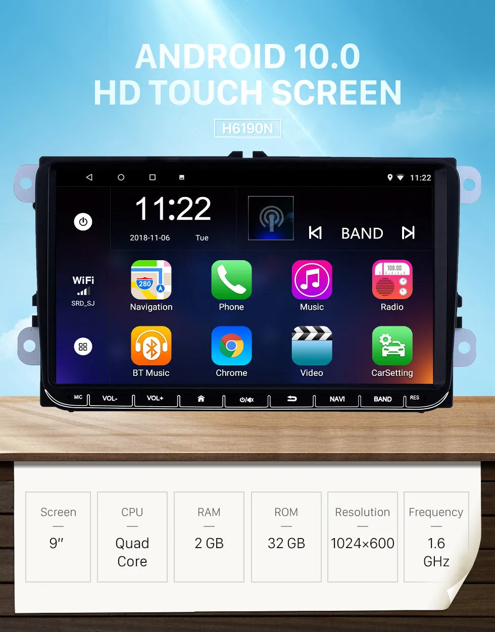 ХарфейAndroid 10,0 9 дюймов сенсорный экран GPS навигация радиоДля Фольксваген Пассат Поло Гольф ШкодаС поддержкой Bluetooth USB WIFI Carplay Digital TV