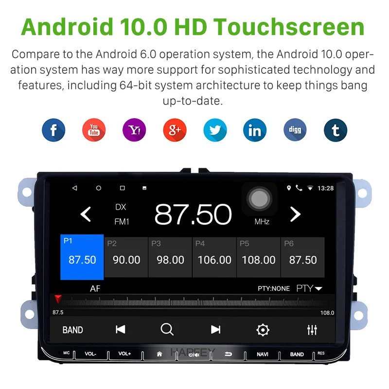 Harfey Android 10,0 9 "GPS автомобильное радио для Фольксваген Пассат Поло Гольф Шкода с Bluetooth USB WIFI Поддержка Carplay Цифровое ТВ