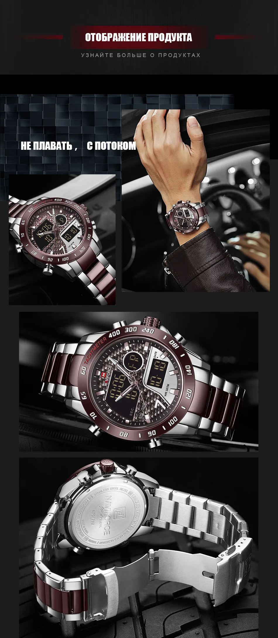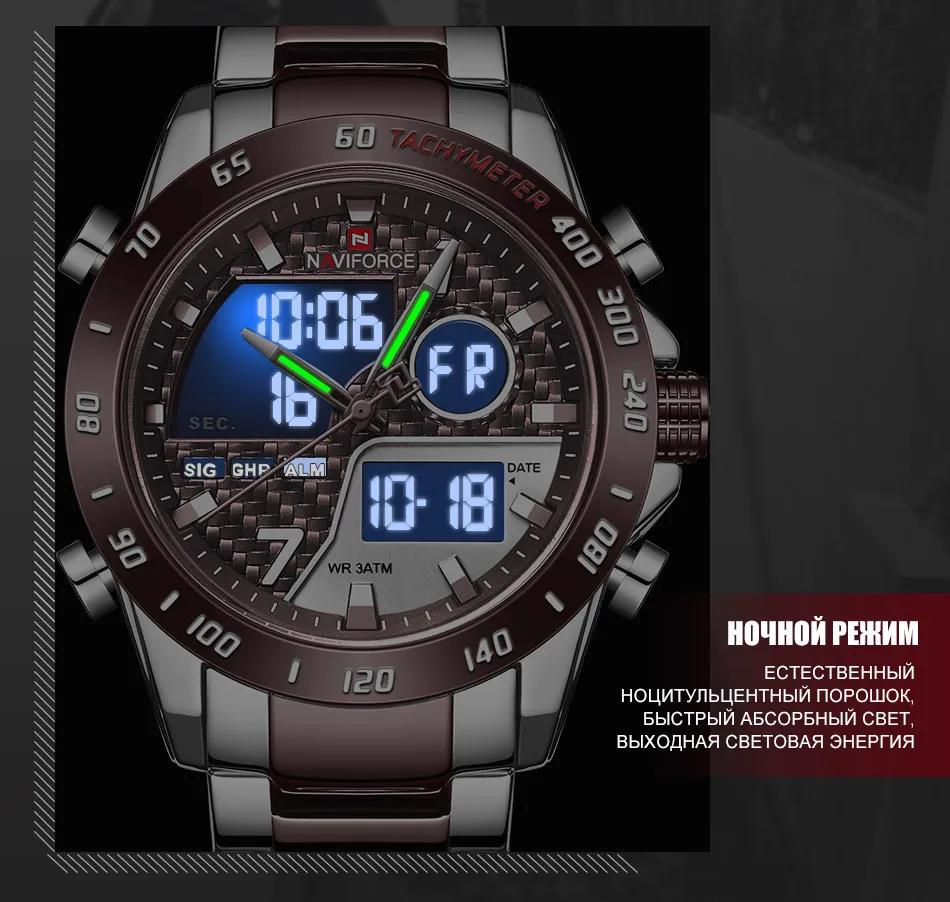 Часы NAVIFORCE мужские, цифровые, светодиодные, спортивные, военные, мужские, кварцевые, наручные, мужские, светящиеся, водонепроницаемые часы