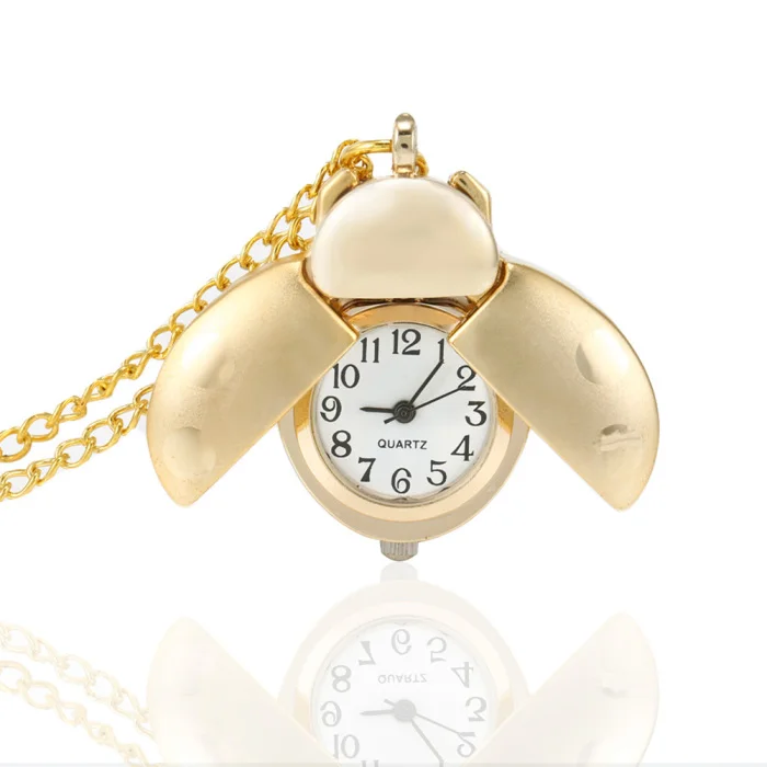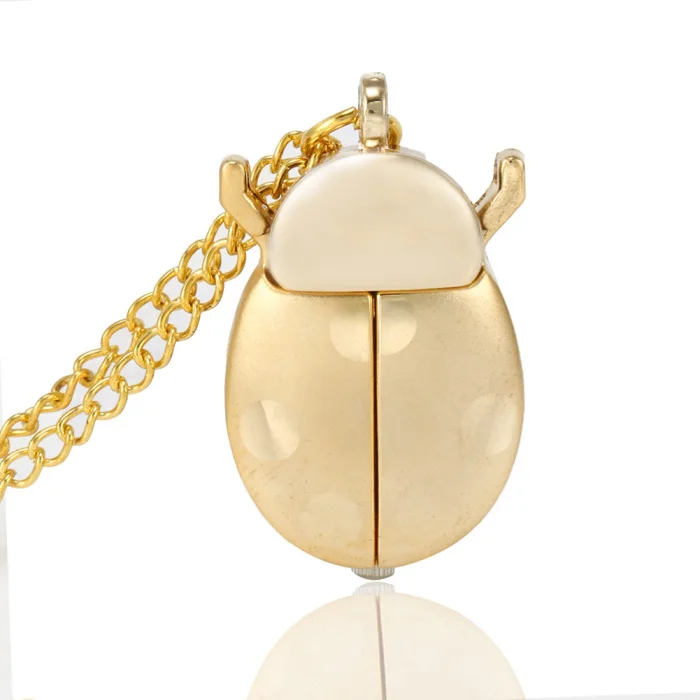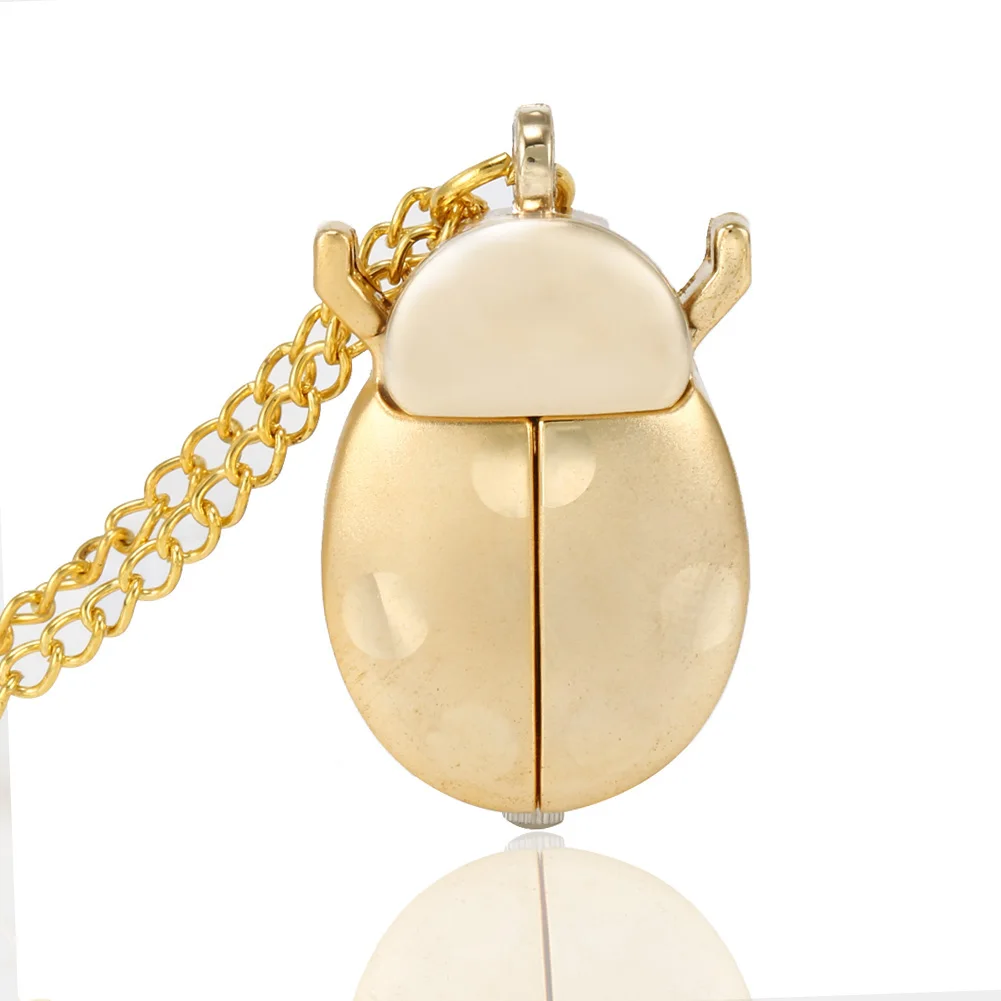 Ретро золотые милые кварцевые карманные часы Жук механический кулон ожерелье цепь часы подарки LL @ 17