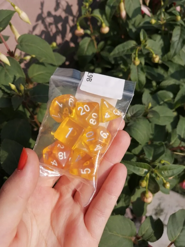 Примечание о потеплении:Небольшая часть, не для детей в возрасте до 3 лет.Тип: костиРазмер: 15 мм-20 ммЦвет: прозрачный: красный/желтый/синий/зеленый/оранжевый/фиолетовыйВес: 25 гМатериал: акрилКол-во: 7 шт./лотКомплектация: игральные кости 7 шт./лот