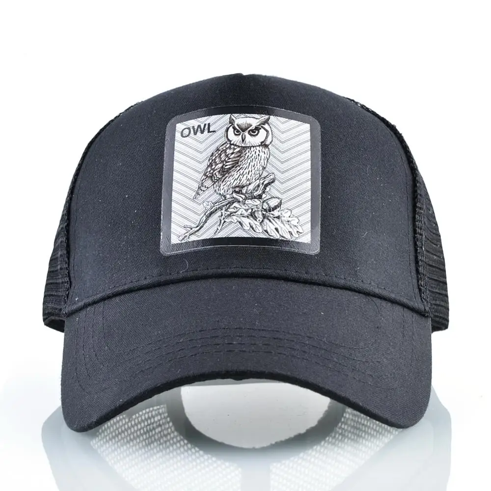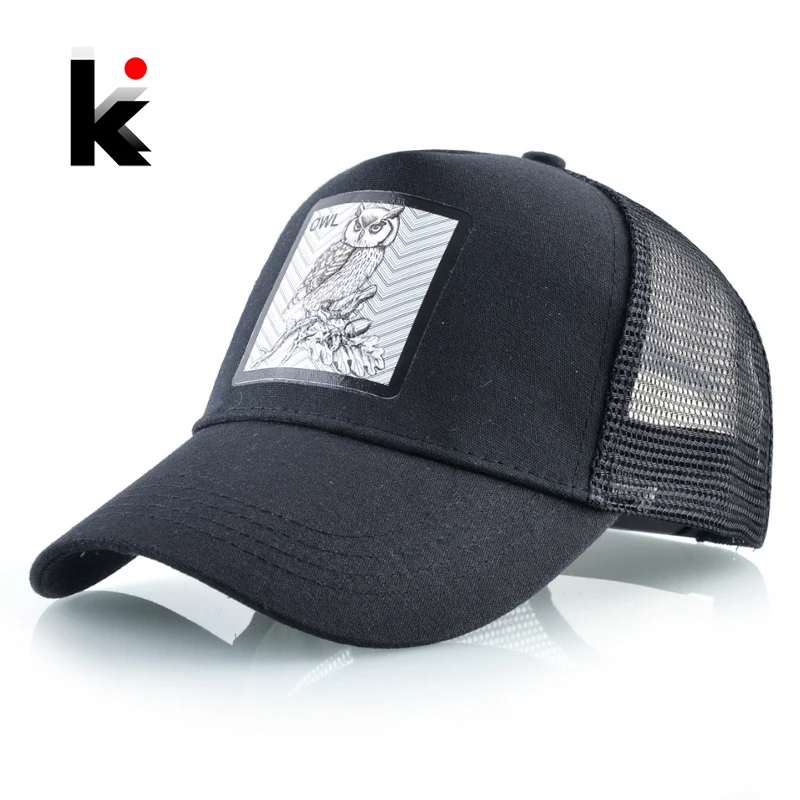 Бейсболка Кепка водителя грузовика мужские летние Обувь с дышащей сеткой бейсбольные кепки для женщин; Цвет Черный; Модные в стиле хип-хоп бейсбольная кепка с совой из патч Kpop кости