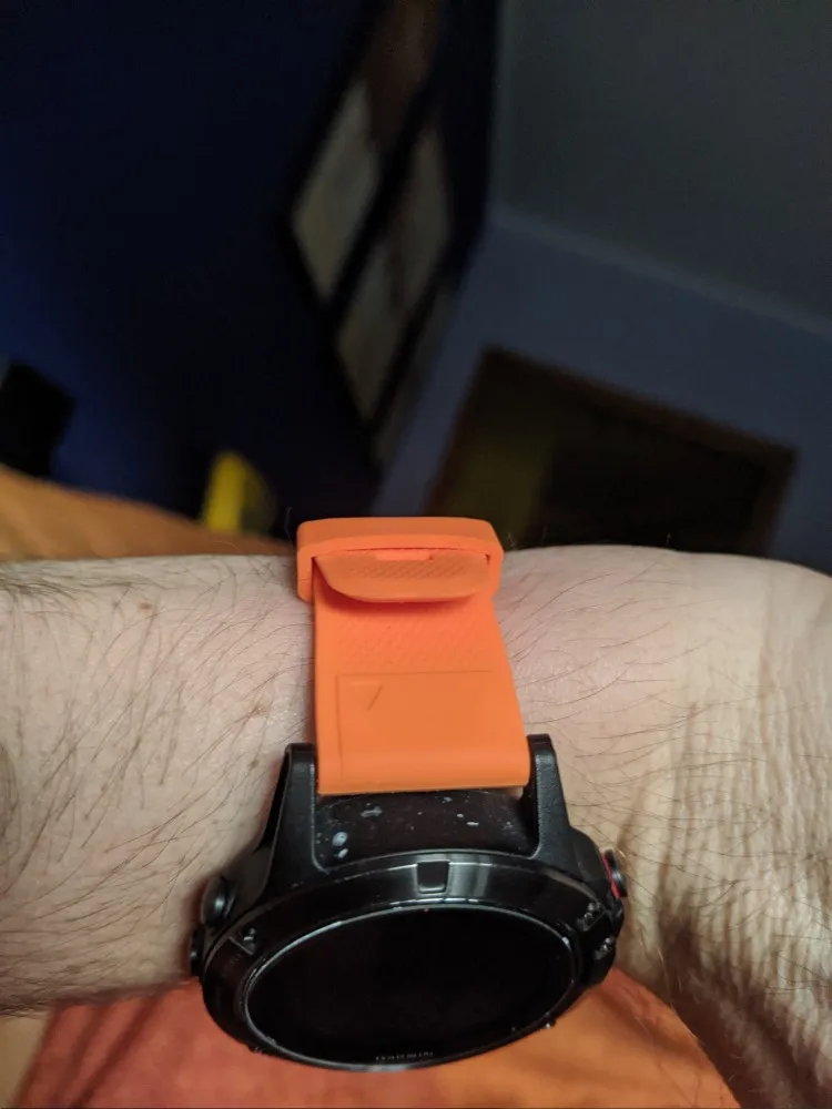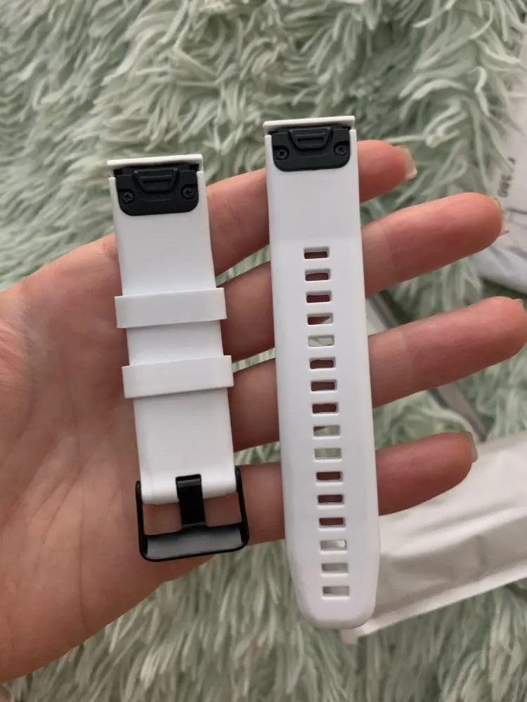 Ремешок идеально подходит для моего Garmin Fenix 5X. Они могут видеть некоторую разницу с оригинальным ремешком, но он выглядит очень хорошим качеством. Доставка была быстрой на Канарские острова (это не занимает месяц)