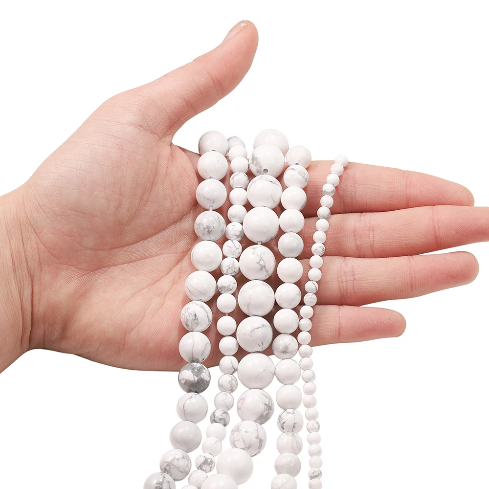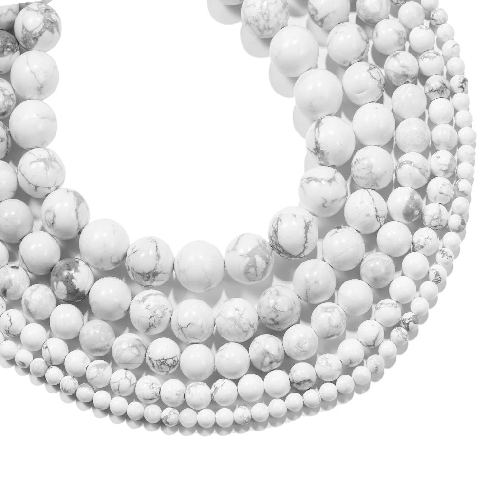 1 нитка, натуральный драгоценный камень, белый бирюзовый говлит, круглые бусины, 4, 6, 8, 10, 12 мм, разделительные бусины, Diy, браслет, ожерелье, аксессуары