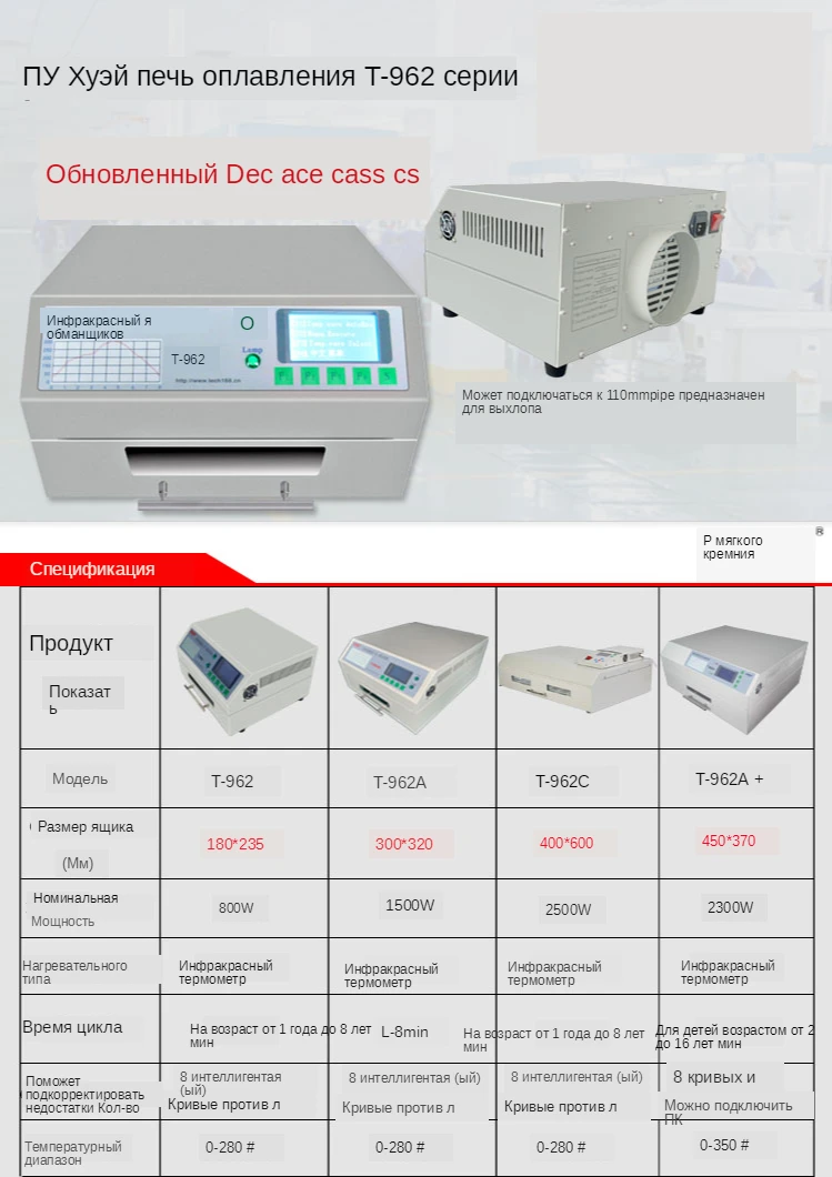 110V220V 800W настольный печь с обратным течением воздуха T-962 инф...