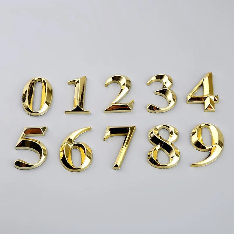 3D 0-9 цифровая Современная наклейка с цифрами для дома, цифровая реклама слов, Пластиковая Золотая дверь для отеля, квартиры, наклейка с цифрами для комнаты