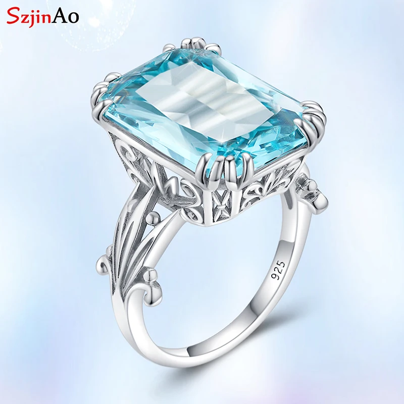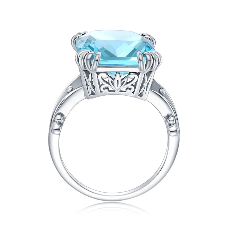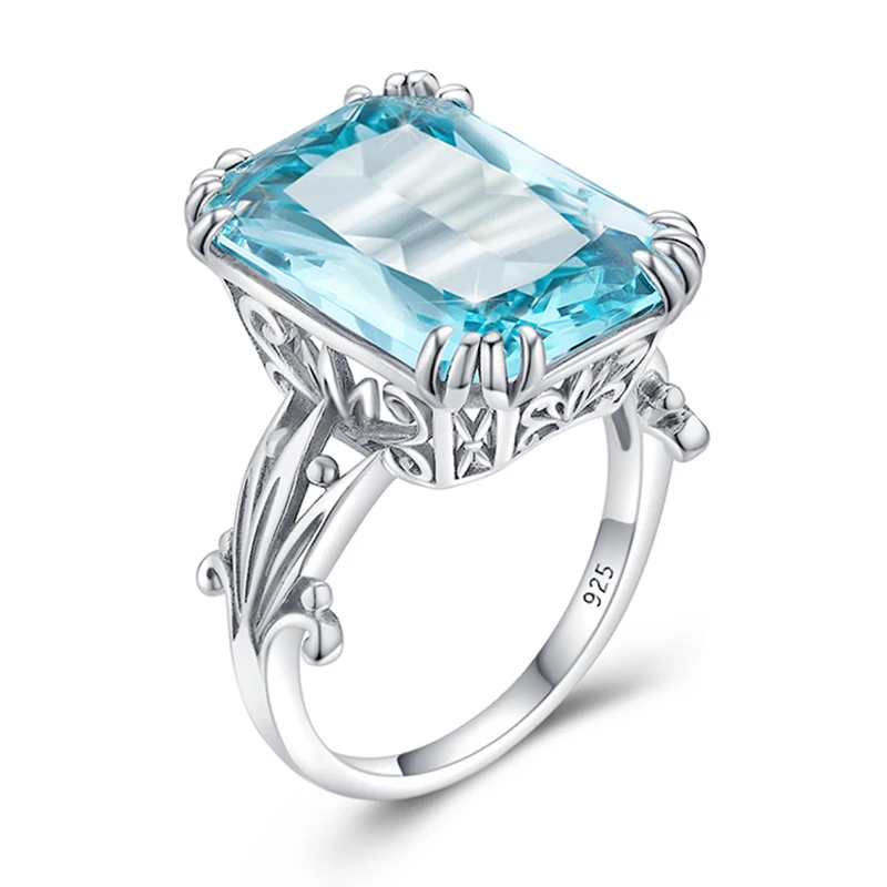 Кольцо женское из серебра 925 пробы с голубым топазом, Стерлинговое Серебро Аквамариновый