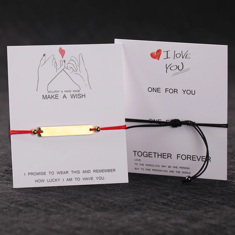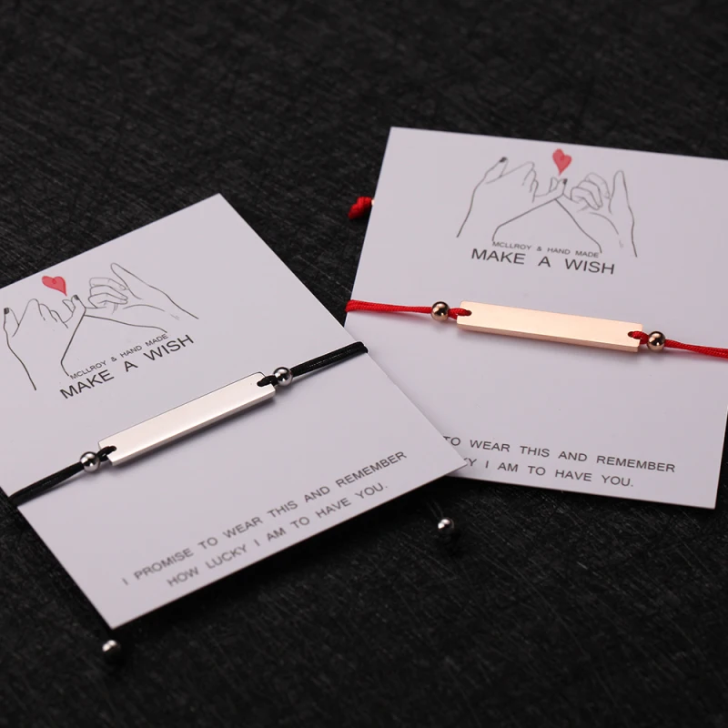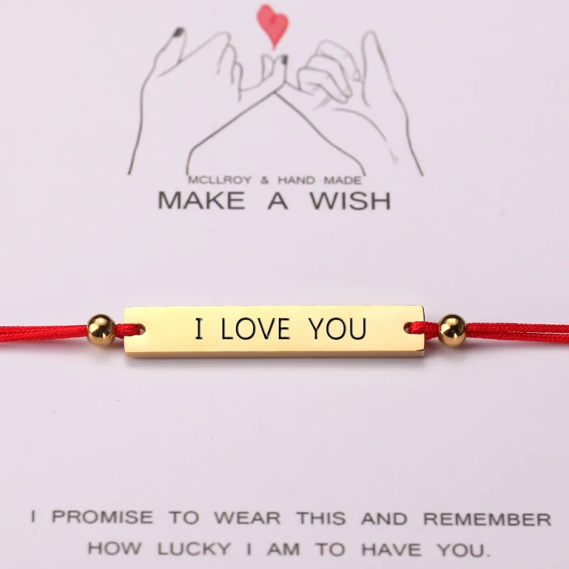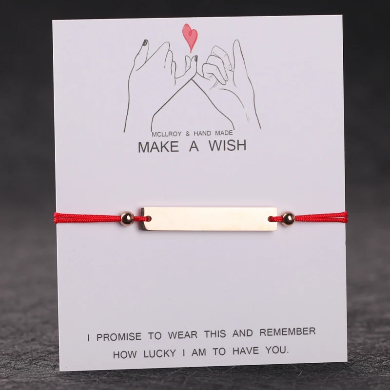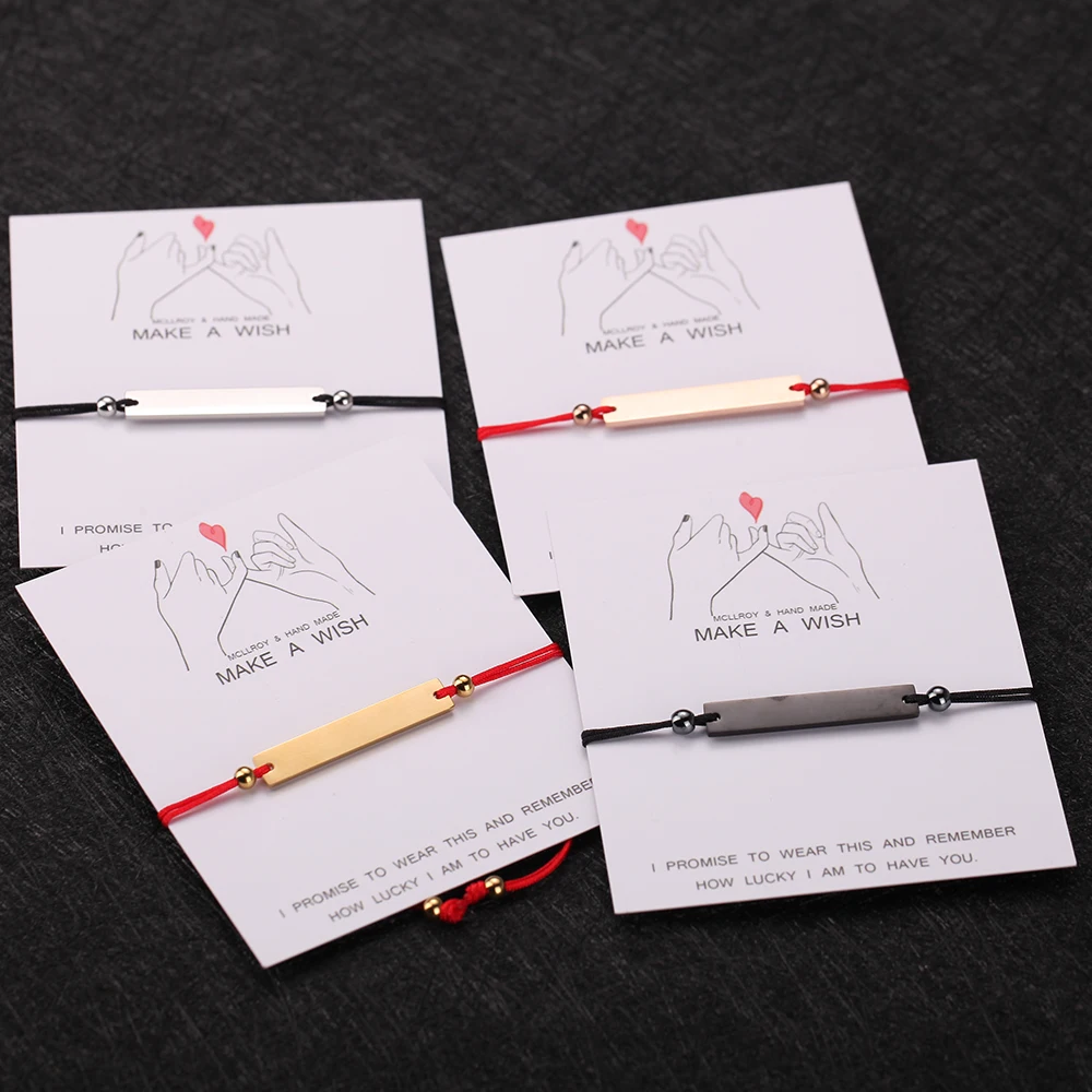 Женский браслет из нержавеющей стали с гравировкой и красным черный браслет-веревочка