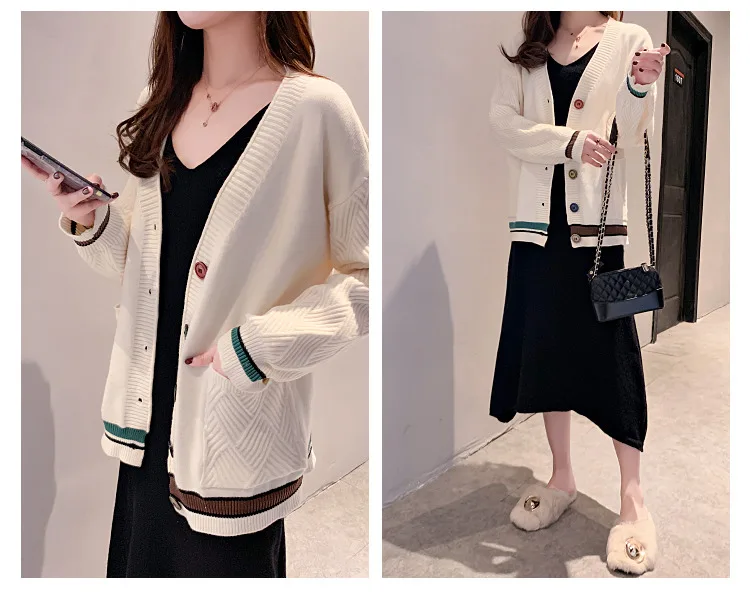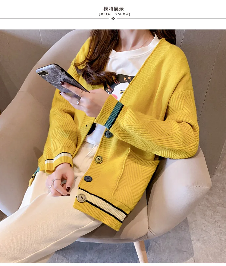 Женский вязаный кардиган PEONFLY, повседневный однобортный толстый свитер свободного покроя желтого и синего цветов, весна 2020