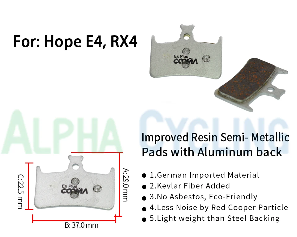 Материал: Ex Plus 100% чистое медное волокно, подложка из алюминиевого сплава4 пары для 4 тормозных суппортовПротестировано TUV Rheinland со стандартом ЕСПодходит: Hope E4, RX4