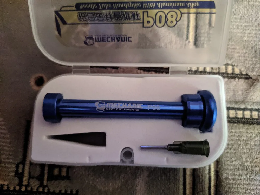 Хорошее качество. Хорошая вещь-это большая игла, поставляемая с толкателем, потому что иголка, поставляемая в виде потока, была слишком маленькой. Было очень сложно выдавить флюс оригинальной иглой.