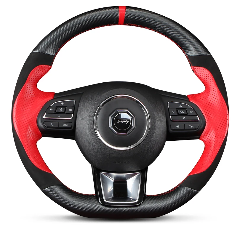 Черный, красный кожаный черный углеродного волокна DIY чехол рулевого колеса автомобиля для MG MG6 GS MG3 ZS