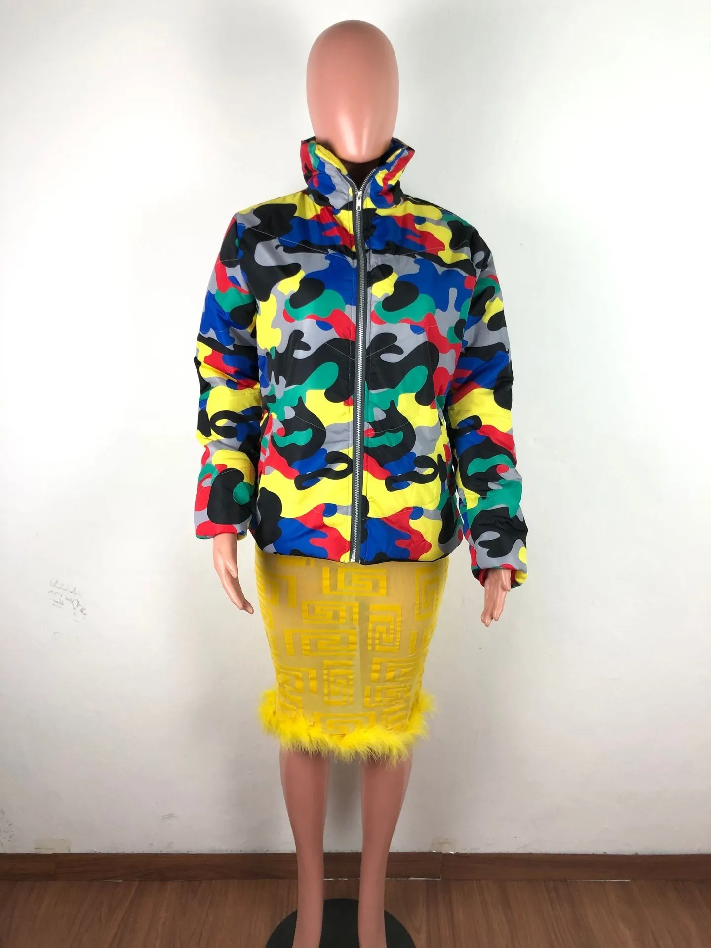 Оранжевое камуфляжное хлопковое Стеганое пальто Adogirl, короткая куртка на молнии с воротником-стойкой и длинными рукавами, осенне-зимняя модная теплая верхняя одежда