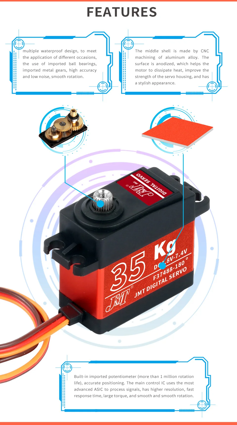 Цифровой сервопривод JMT из алюминия, водонепроницаемый, 20 кг, 35 кг