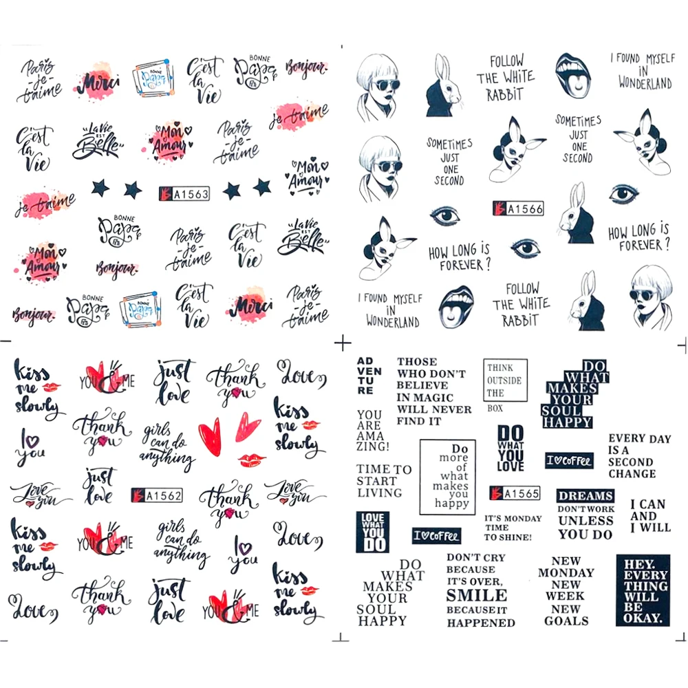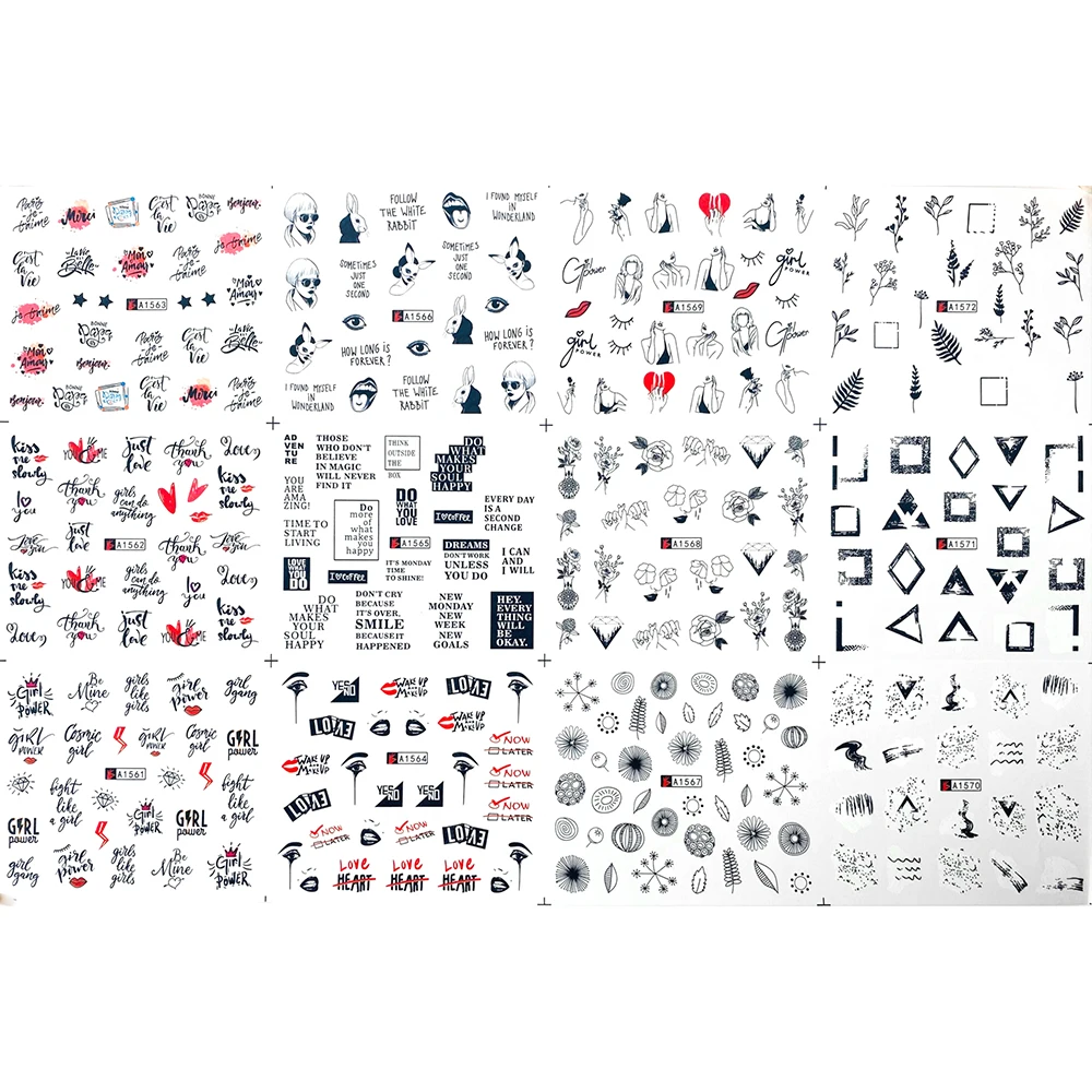 Наклейки для дизайна ногтей, 12 дизайнов, водные наклейки для ногте...