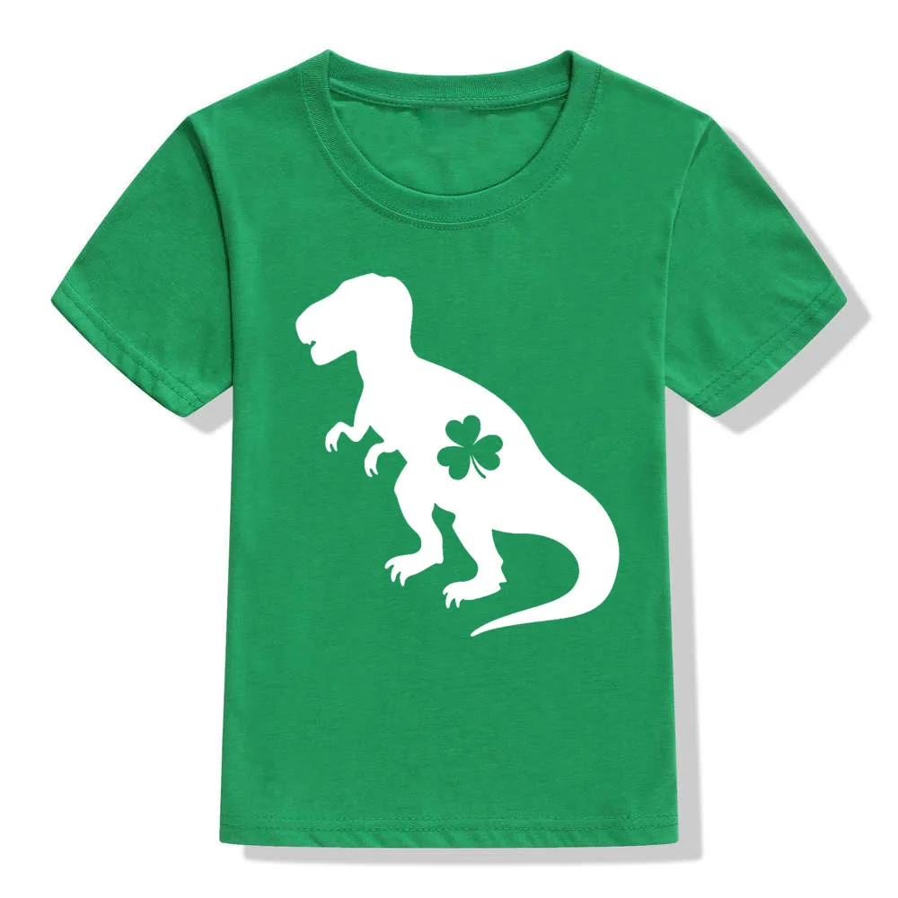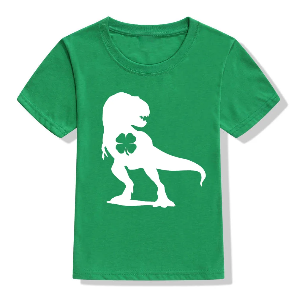 Зеленая футболка с принтом «Счастливый динозавр», «День Патрика» детские белые футболки для мальчиков и девочек одежда для первого Дня Святого Патрика модные футболки