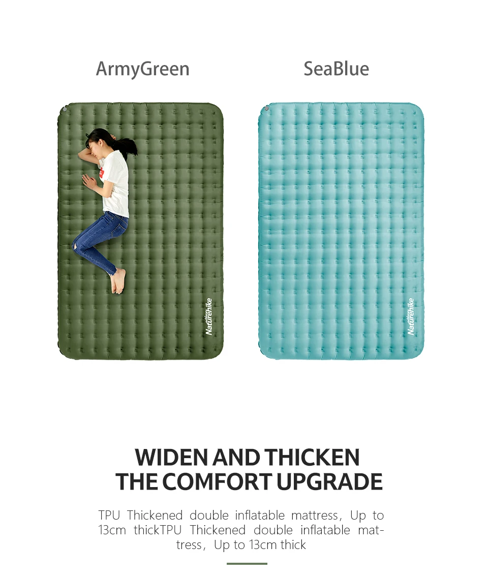 Туристический надувной коврик NatureHike, на 2 человек, портативный воздушный матрас, Толстый водонепроницаемый, с воздушным насосом