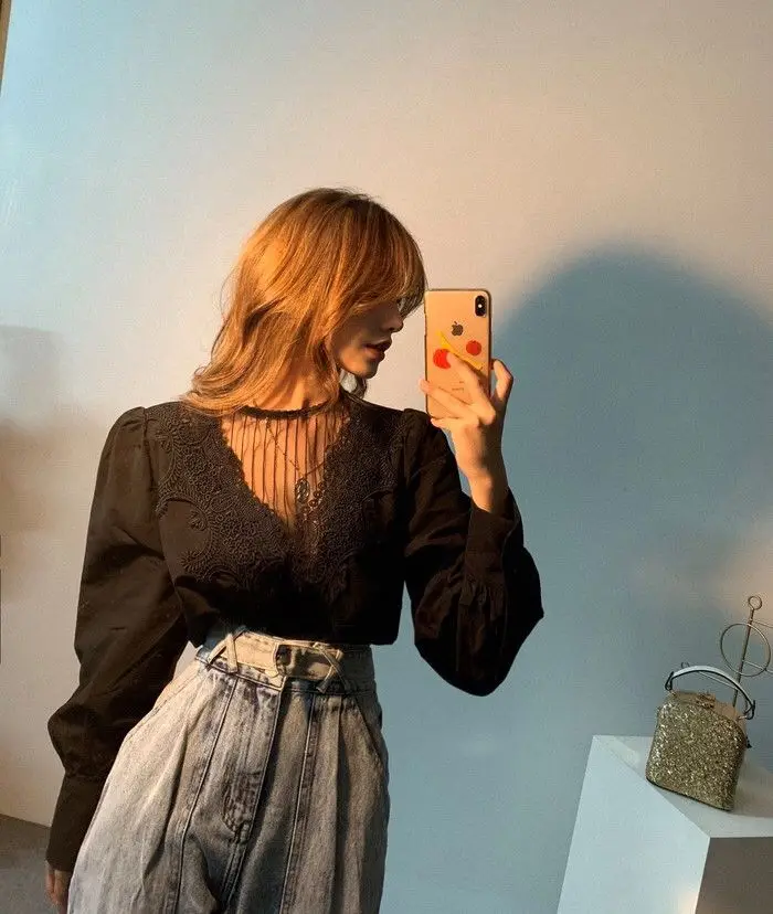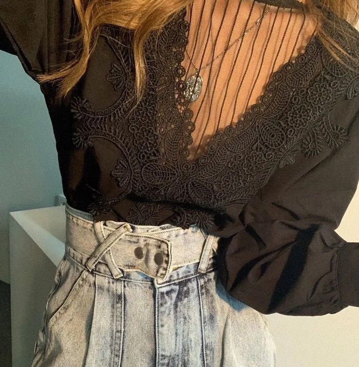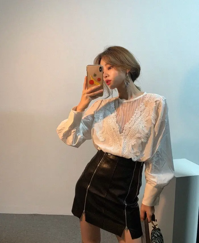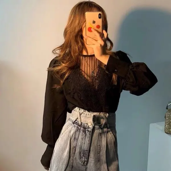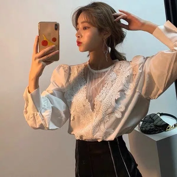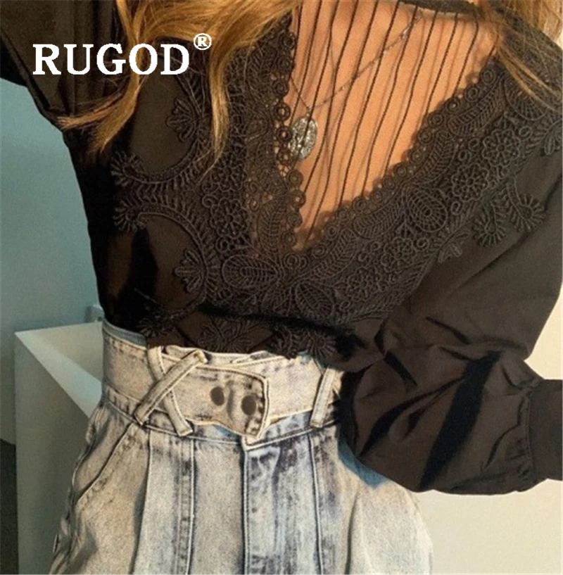 RUGOD Сексуальная кружевная сетчатая женская блузка с пышными рукавами, офисные женские рубашки, повседневные белые блузки, Весенние Новые Топы 2020