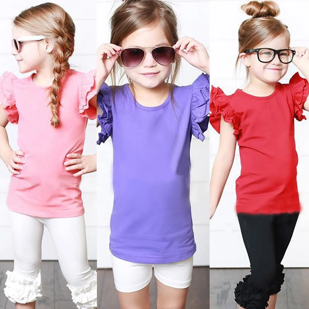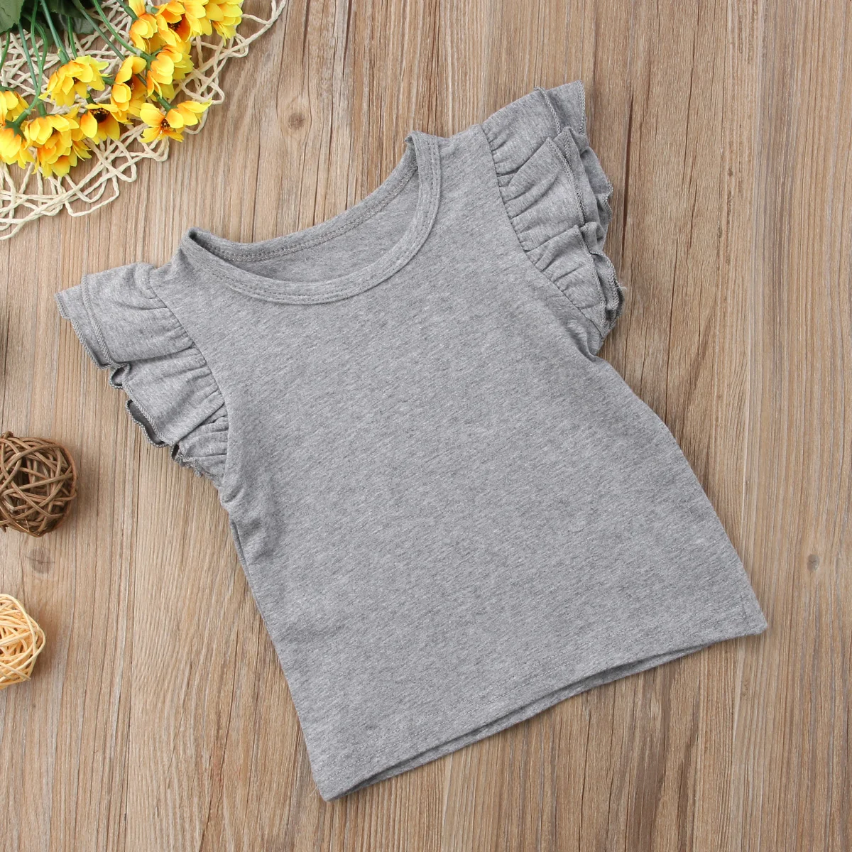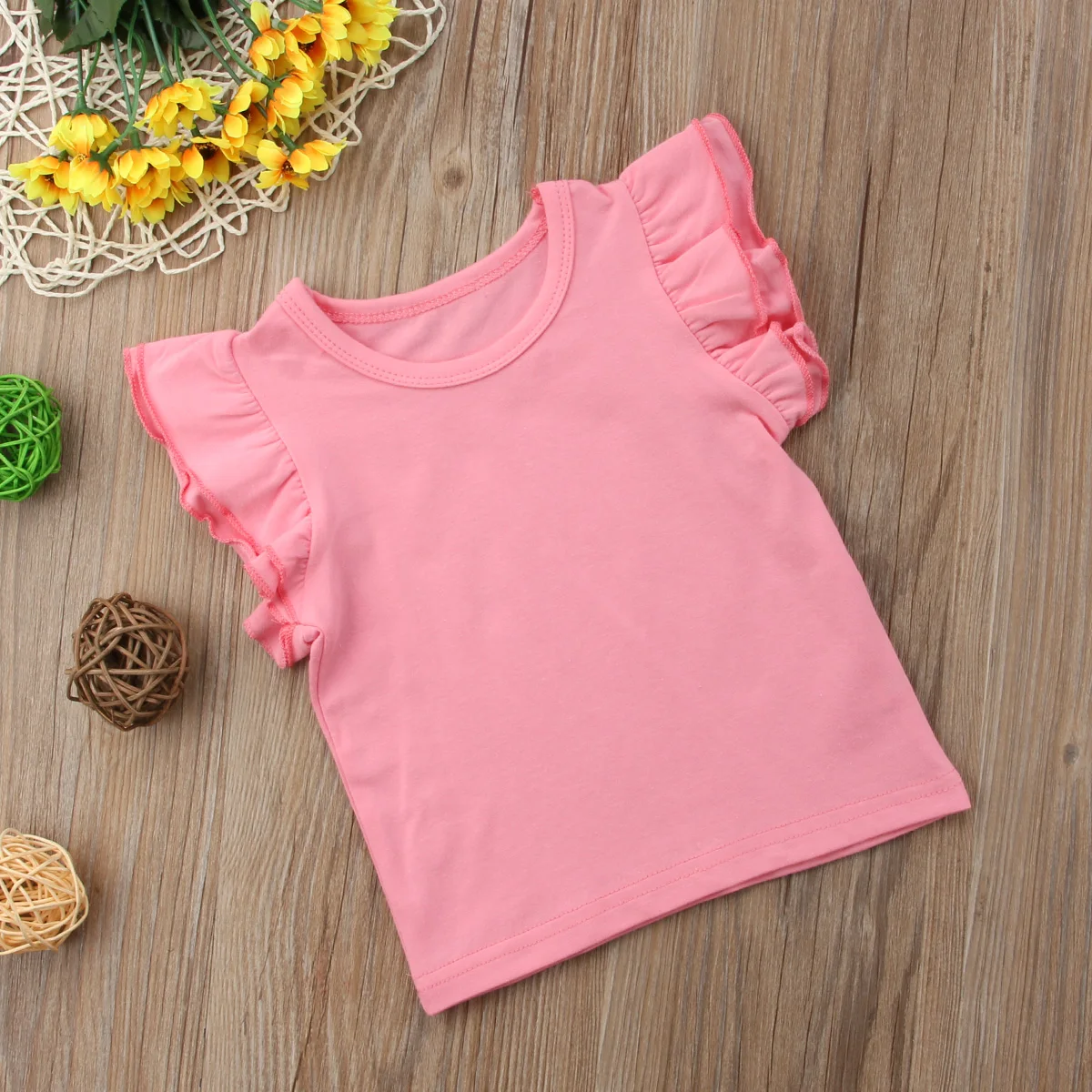 Хлопковая Футболка с рукавами-летающими, летняя одежда для маленьких мальчиков и девочек, детская одежда