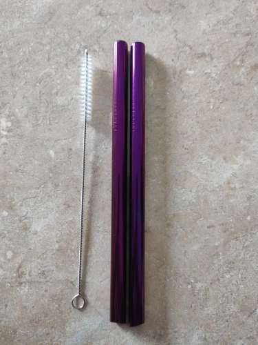 Солома и великолепное отражение синей радуги инкрустация, приятный металлик во рту и не окисляется, к сожалению, у меня только было. Соломинка и не маленький очиститель с наклоном, который я заказываю в