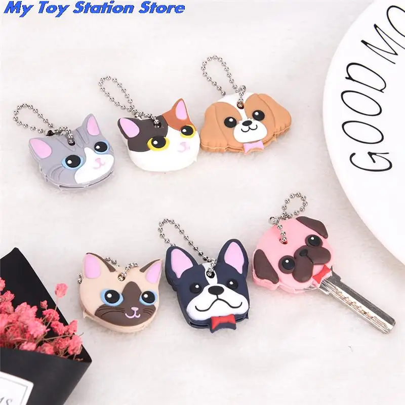 1 шт. Силиконовое кольцо для ключей, колпачок, чехол, милые животны...