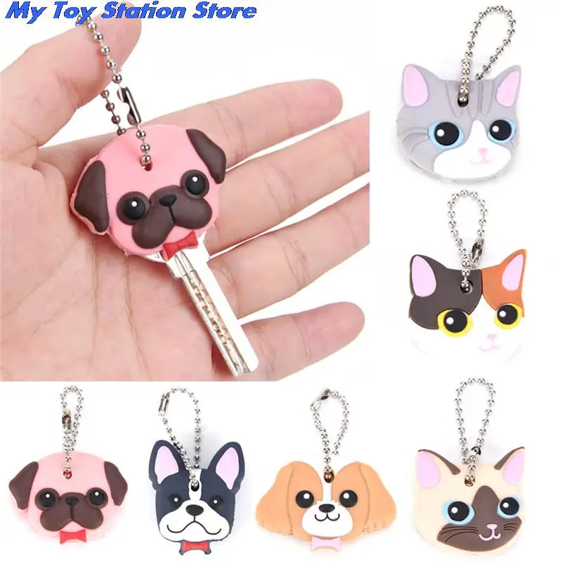Силиконовое кольцо для ключей чехол для ключей в форме животных, кошки, хомяка, Мопса