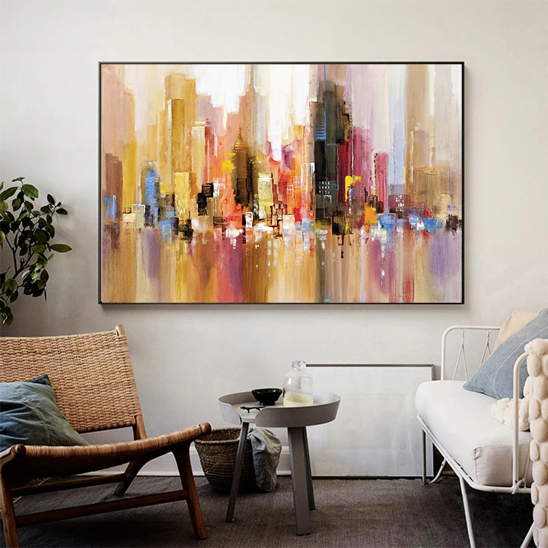 Абстрактная картина маслом в виде городского пейзажа, HD Печать на холсте, Постер и фотография для гостиной, дивана, украшение