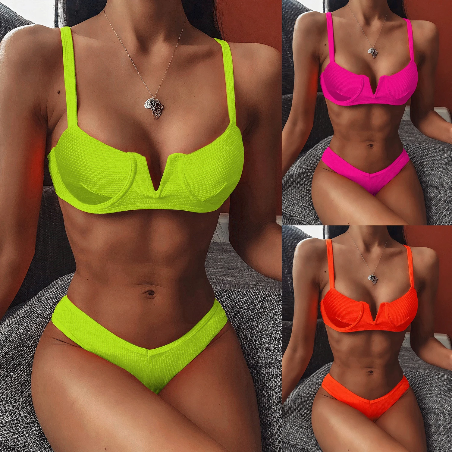 Новинка 2022, сексуальный Летний Пляжный Женский комплект бикини с бюстгальтером пуш-ап с мягкими чашечками, купальник, купальный костюм, пляжная одежда