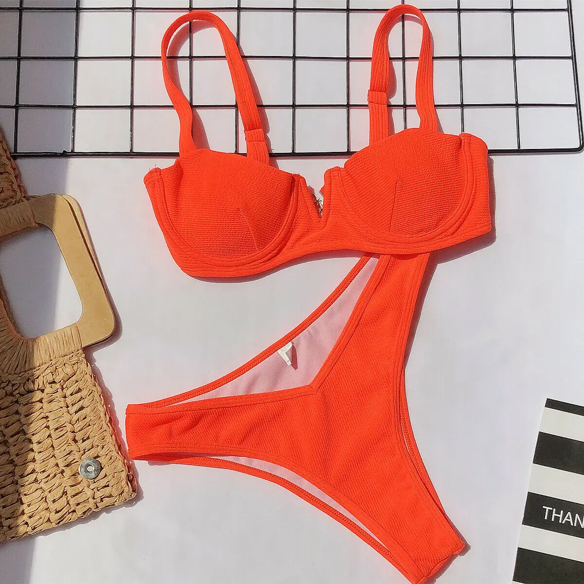Соблазнительное неоново-оранжевое микро бикини, женское однотонное ...