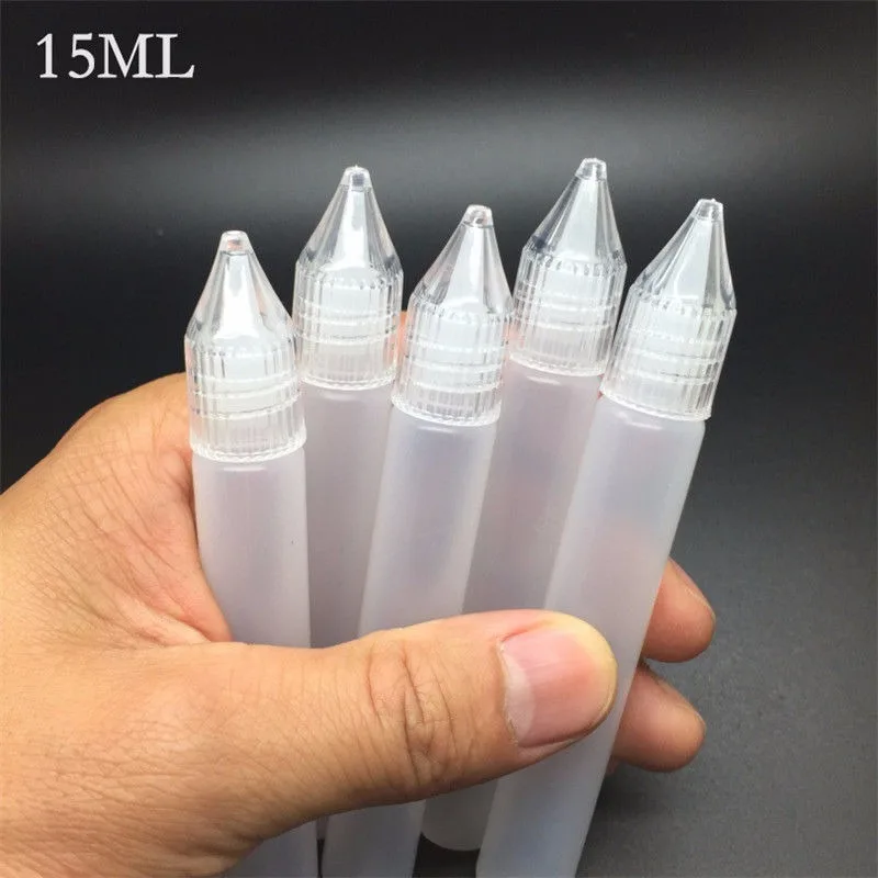 Бутылочки-капельницы с иглой, 15 мл, пустые пластиковые косметические Бутылочки для жидкости, аксессуары для масла, длинные тонкие пипетки с единорогом, оптовая продажа