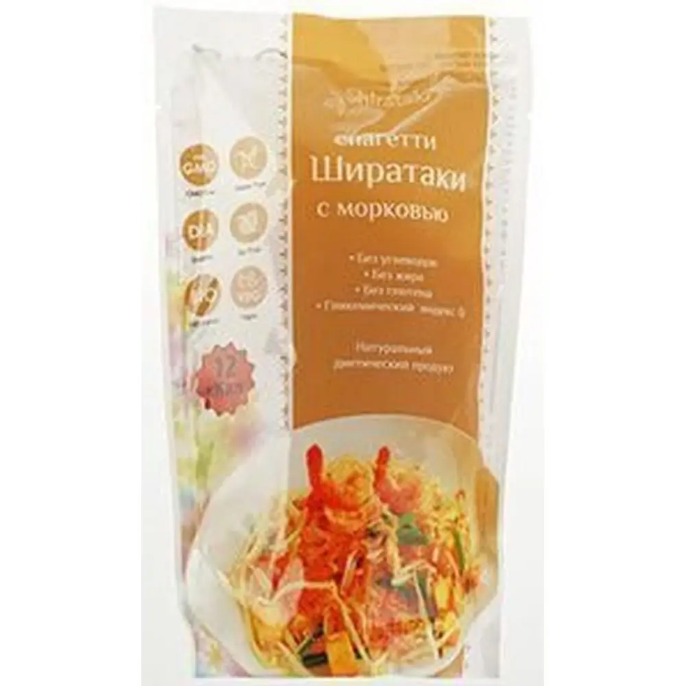 Всего 9 калорий в 100 г. Макароны из клетчатки коньяку. 100% натурально! Тонкие длинные спагетти с добавлением моркови