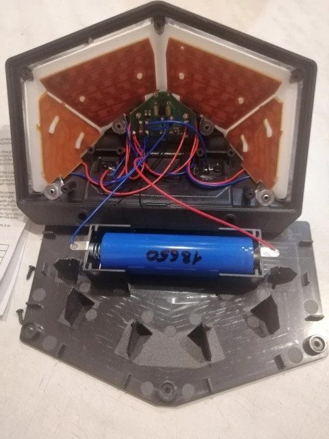 качество сборки "халтура". ограничительный упор для аккумулятора отломан, т.к. аккумулятор чуть длиннее чем место для него. пришлось доделывать. контакт солнечной батареи выходит наружу. для наружной установки малопригоден без доработки.