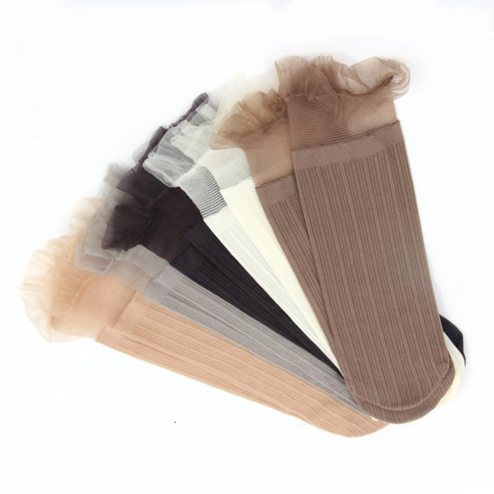 Носки женские кружевные однотонные, мягкие дышащие милые длинные, тонкие сетчатые, весна-осень 2020