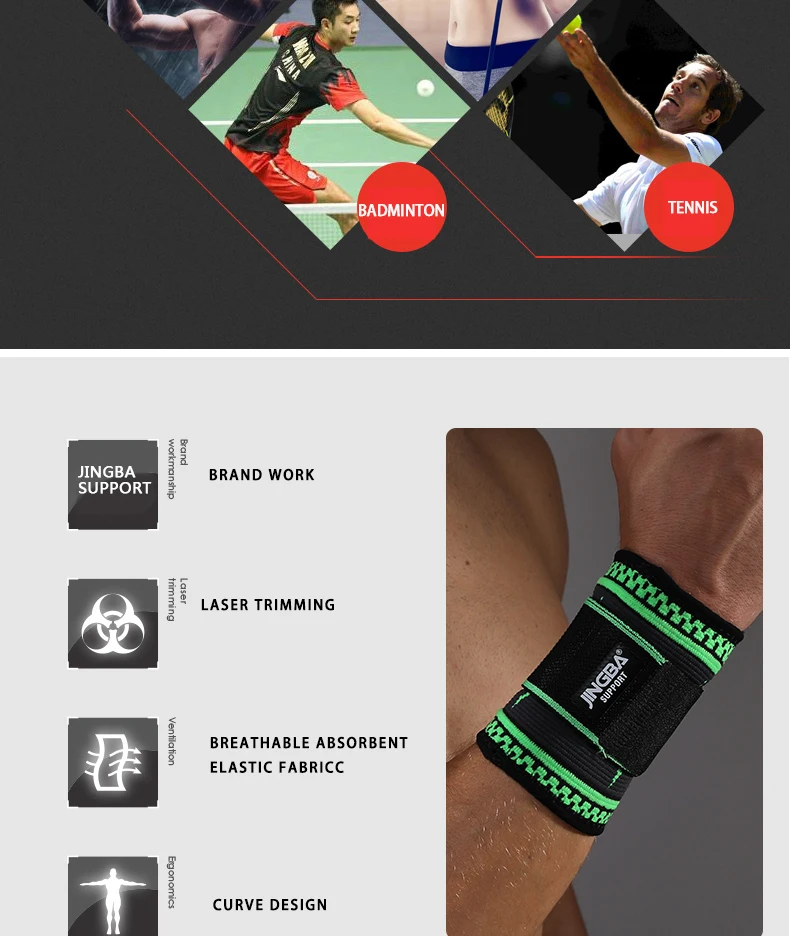 Бандаж JINGBA мужской, Нейлоновый, для фитнеса, бадминтонный напульсник