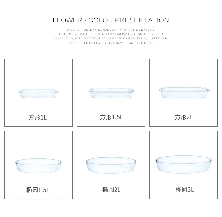 Характеристики:Материал: стеклоЦвет: как на картинкеРазмер: (длина, ширина, высота)Прямоугольник 1Л: 29,6x18x5,1см1.5Л: 34.4x20.7x5.1см2Л: 39.3x23.5x5.1смОвал 1,5 л: 20,6x17,9x6 см2Л: 30.2x21.3x6.9 см3л: 34.9x24.1x6.4смПосылка включает в себя:1 х обеденная тарелкаЖаростойкая овальная стеклянная тарелка на пару, блюдо для рыбы, микроволновая печь, прямоугольная форма для выпечки, посуда, тарелка, посуда, тарелка для салата, обеденная тарелка