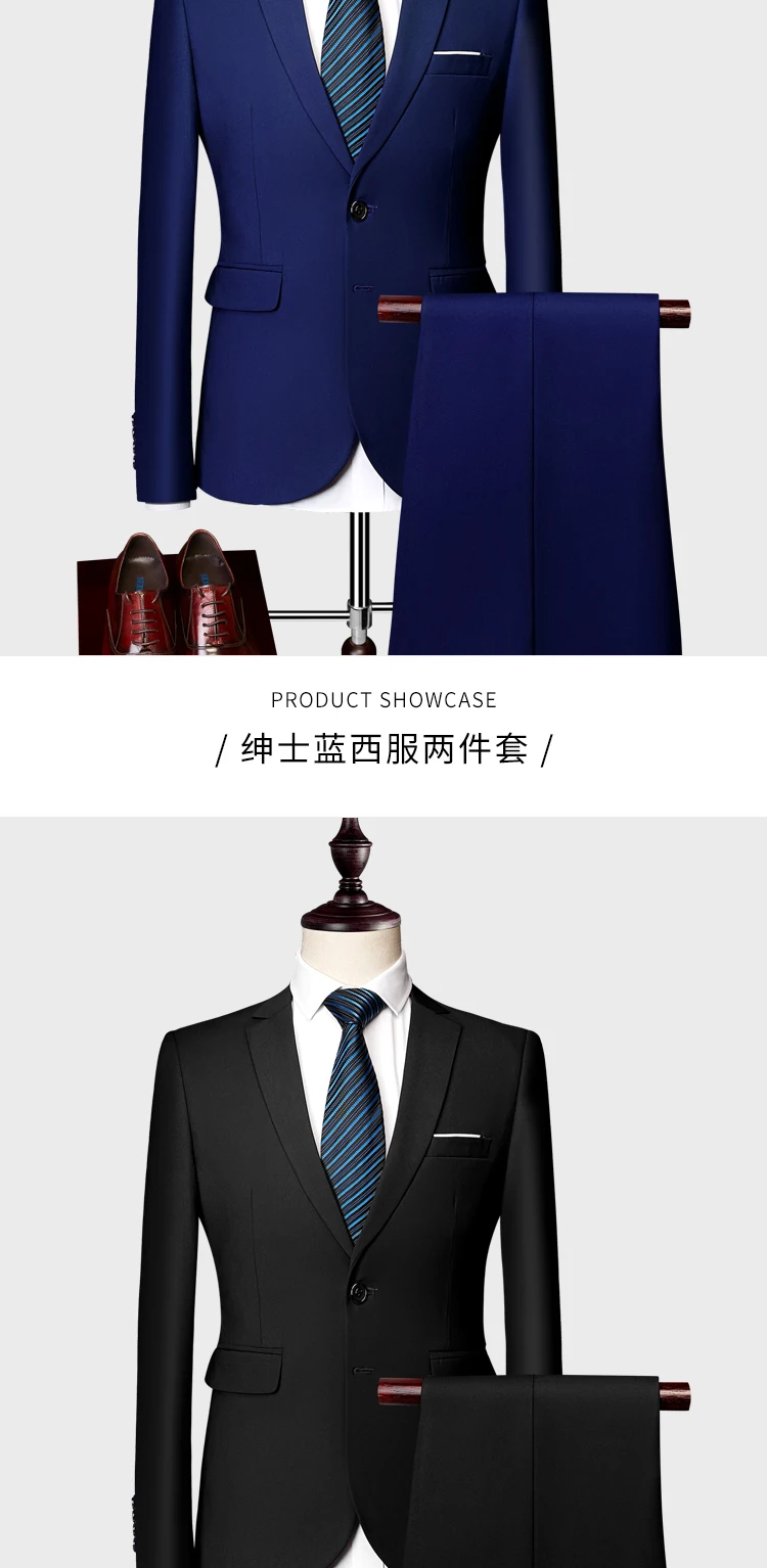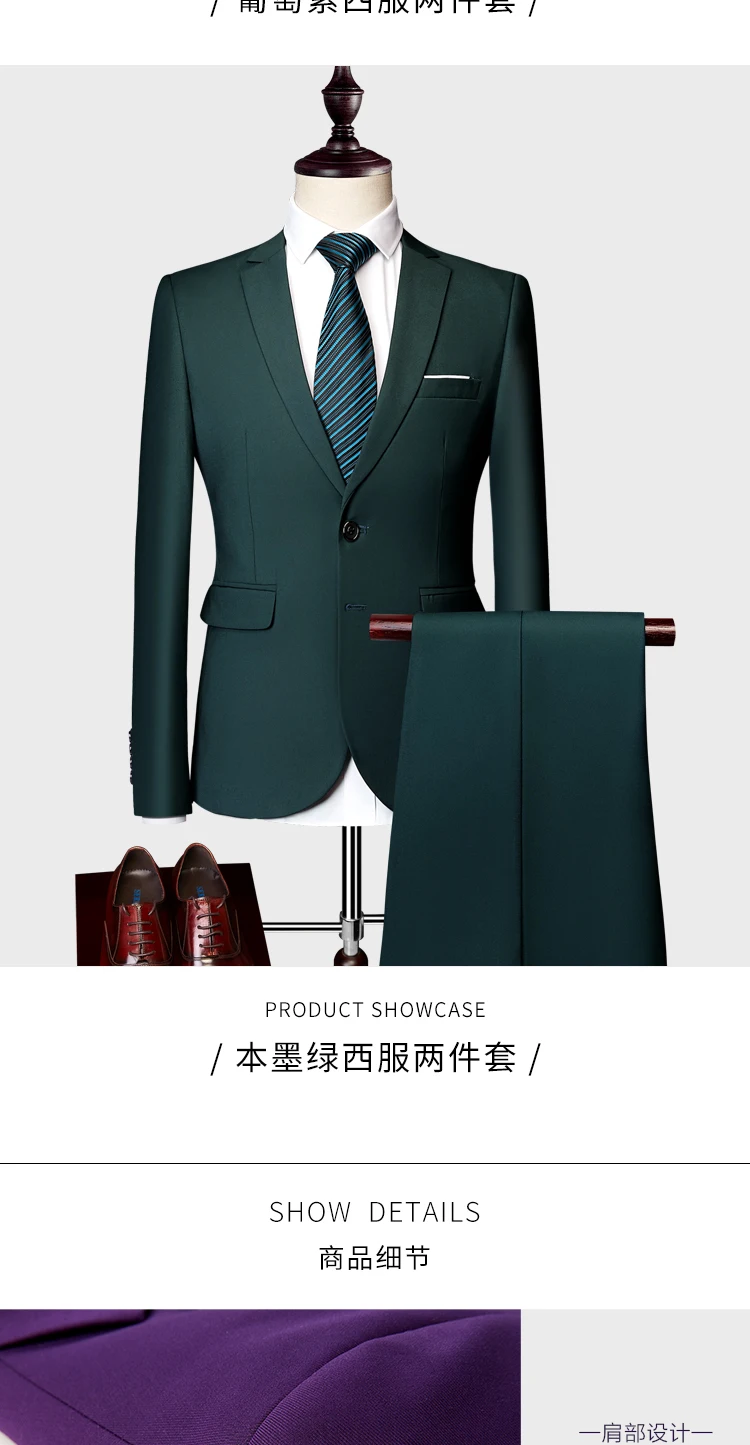(Пиджак и брюки) новое поступление весенние Стильные мужские изысканные костюмы деловые повседневные однотонные однобортные мужские однотонные костюмы из двух предметов