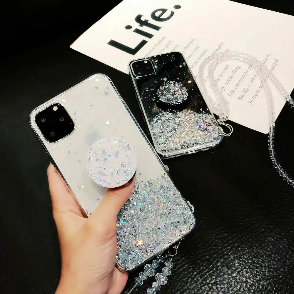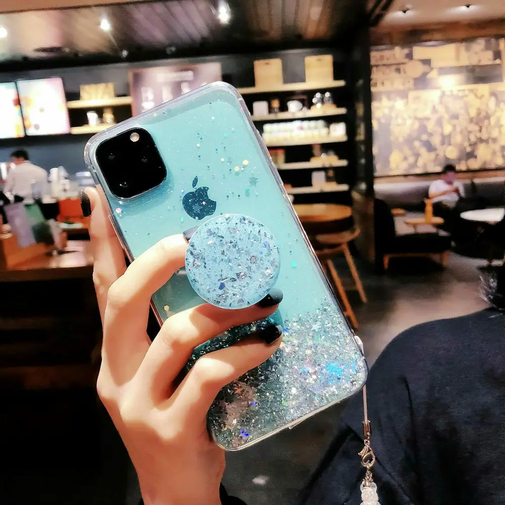 Чехол с блестками для iPhone 12 Pro Max 11 Pro Max XS XR X XS Max 6s 6 7 8 Plus, тонкий чехол с подставкой