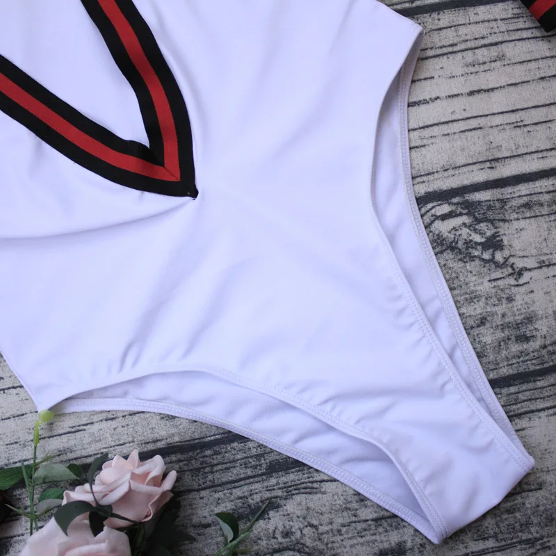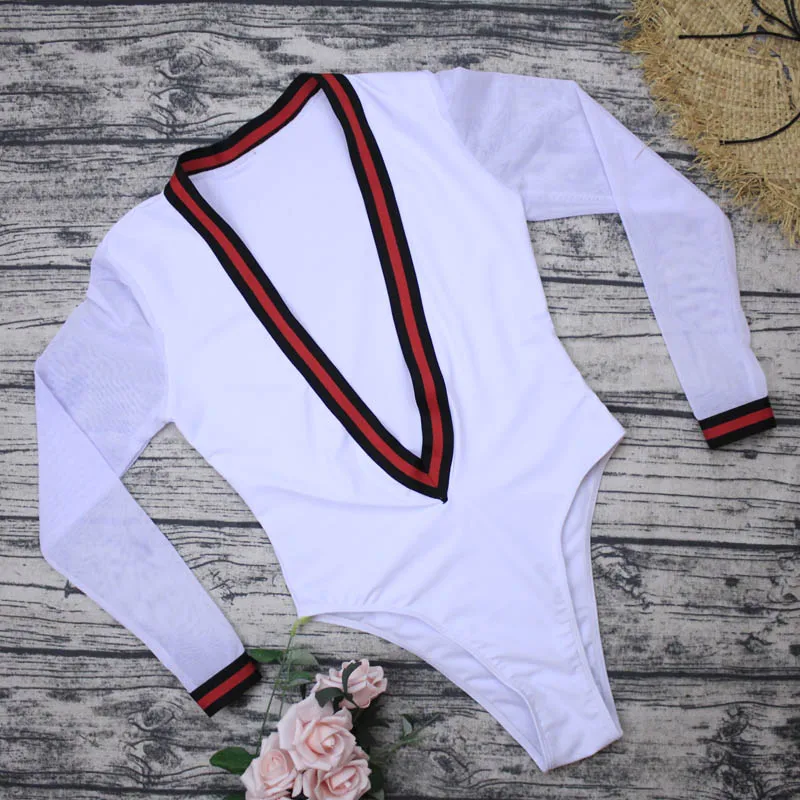 Новый сексуальный слитный купальник с глубоким V-образным вырезом, белый купальник, Женское боди с длинным рукавом, купальный костюм, монокини, купальник badpak dames