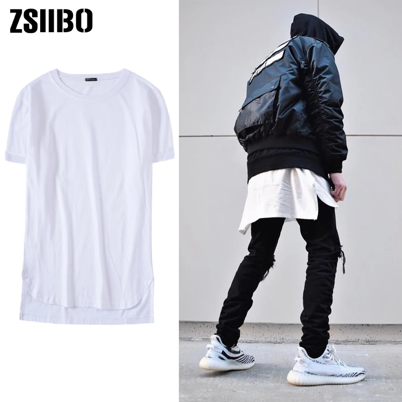 Удлиненная футболка в стиле хип-хоп, Мужская модная уличная футболка унисекс с коротким рукавом, длинная строчка, искусственная Мужская футболка
