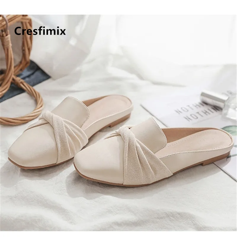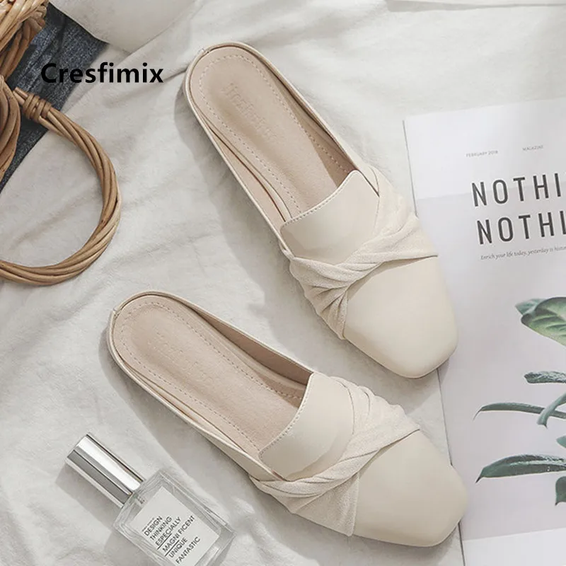 Cresfimix zapatos de mujer; Женские милые бежевые весенние слипоны на плоской подошве с круглым носком; Женские повседневные летние туфли на плоской подошве; Крутые лоферы; a5784