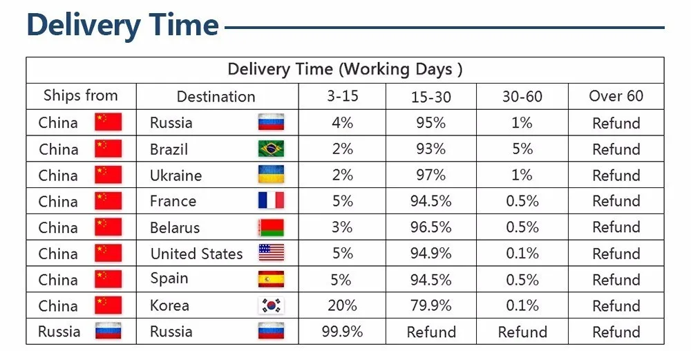 Оплата:1. Мы принимаем Alipay на Aliexpress.2. Вы можете оплатить с помощью Visa, Mastercard, Western Union, Qiwi и банковского перевода.3. Все платежи принимаются через безопасный платежный процессор ESCROW.4. Оплата должна быть произведена в течение 3 дней после размещения заказа.Доставка:1. Мы отправляем только на подтвержденный адрес заказа, пожалуйста, убедитесь, что ваш адрес должен соответствовать вашему адресу получателя.2. Время доставки определяется перевозчиком и не включает выходные и праздничные дни. Срок доставки может отличаться от указанного. Особенно в праздничный сезон3. Если вы не получили свой заказ в течение 50 дней с момента оплаты, пожалуйста, свяжитесь с нами. Мы Отследим информацию о доставке и ответим вам как можно скорее.Послепродажное обслуживание:1. Если вы не удовлетворены полученным товаром, пожалуйста, верните его в течение 7 дней. Когда мы получим возвращенные товары, мы сделаем замену или вернем вам деньги. Пожалуйста, свяжитесь с нами перед возвратом товара.2. О дефектных товарах необходимо сообщить и вернуть нам в течение гарантийного срока, а также указать причину дефекта и номер вашего заказа.3. Стоимость обратной пересылки оплачивается покупателем.Отзывы:1. Если вы получили свой заказ в хорошем состоянии, мы будем благодарны, если вы оставите нам 5-звездочный положительный отзыв.2. Пожалуйста, свяжитесь с нами, если вы не удовлетворены товаром после получения, мы предложим вам удовлетворительное решение, прежде чем вы оставите нам нейтральный или отрицательный отзывы в.О нас1. Добро пожаловать в наш магазин! Мы профессиональная всемирная оптовая компания. Высокое качество продукции, умеренные цены, превосходный уровень обслуживания и надежная репутация – это наши принципы.2. Если вам нравятся наши товары, добавьте мой магазин в свой список «Мои Избранные».