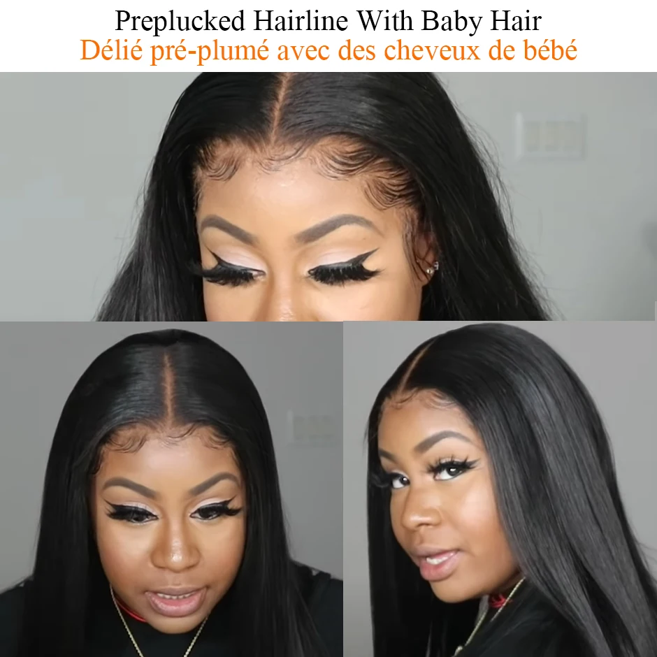Парики женские прямые из натуральных волос, плотность 180%, 4 х4