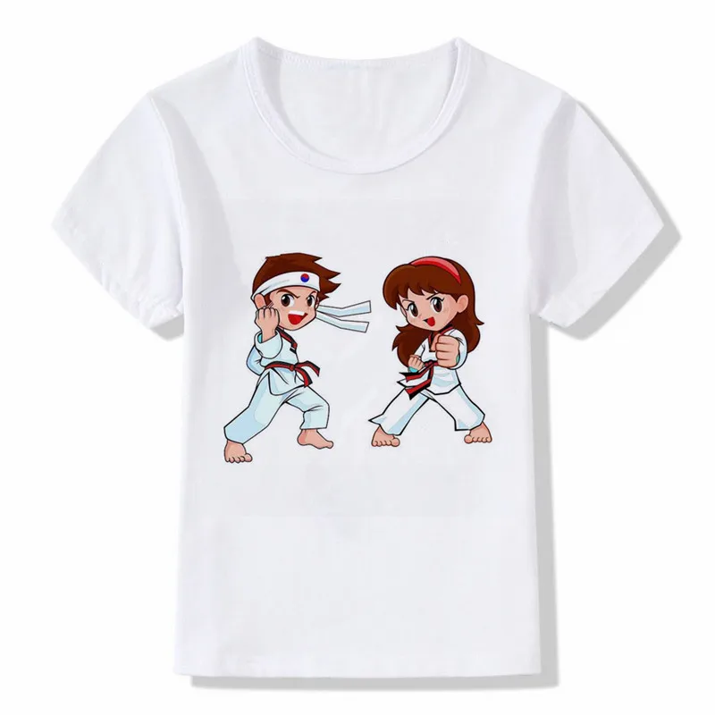 Летние футболки для мальчиков и девочек, детская одежда Whirlwind Taekwondo, новые детские топы, Веселый дизайн, футболка для мальчиков с воротником 0